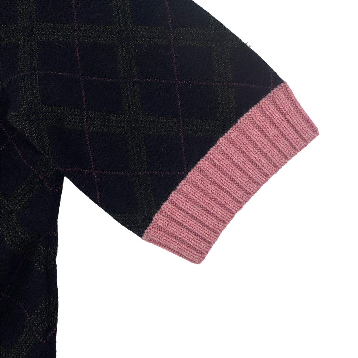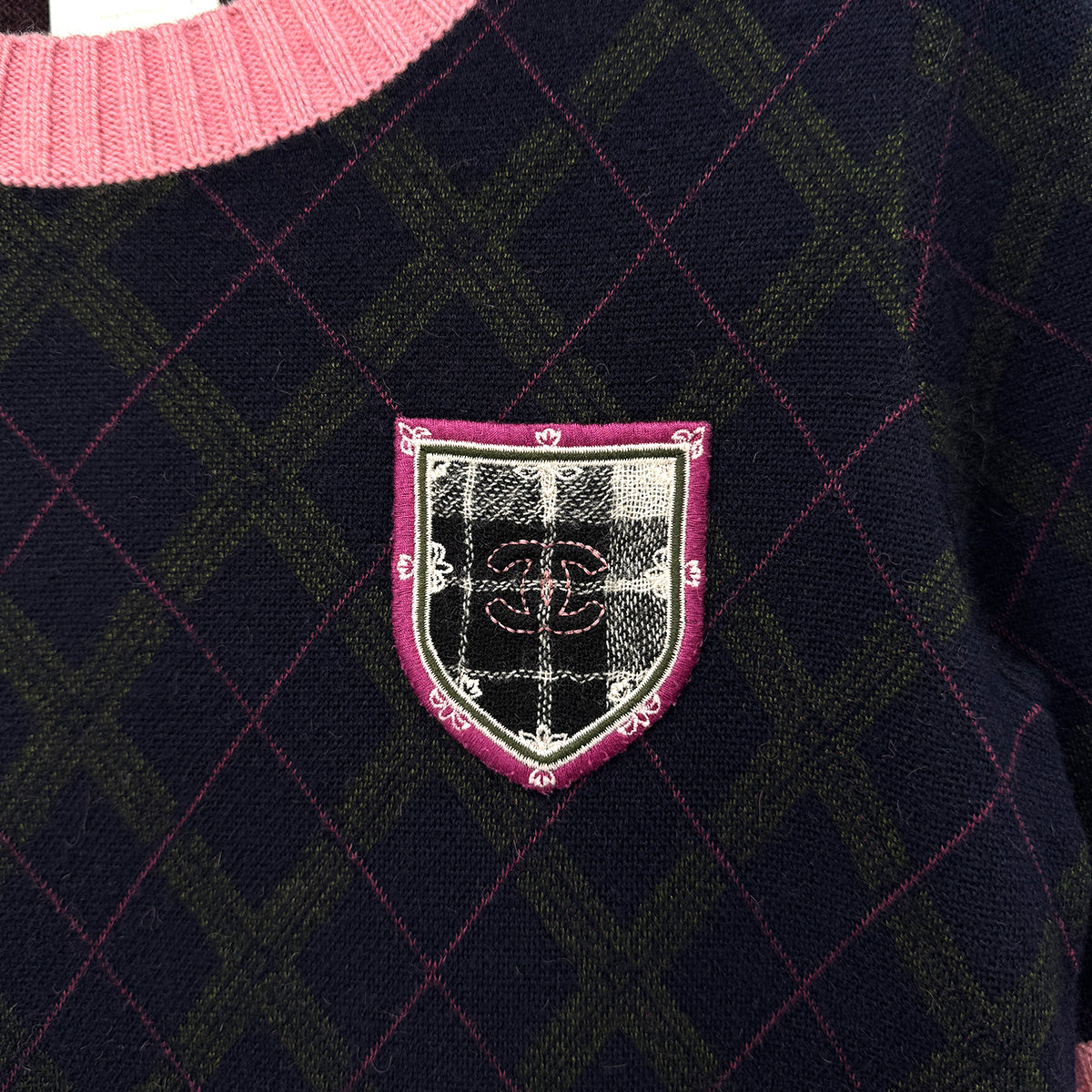 CHANEL VINTAGE COCOMARK PATCH DRESS NAVY PINK GREEN CASHMERE 38 P46 RTW 90284031
