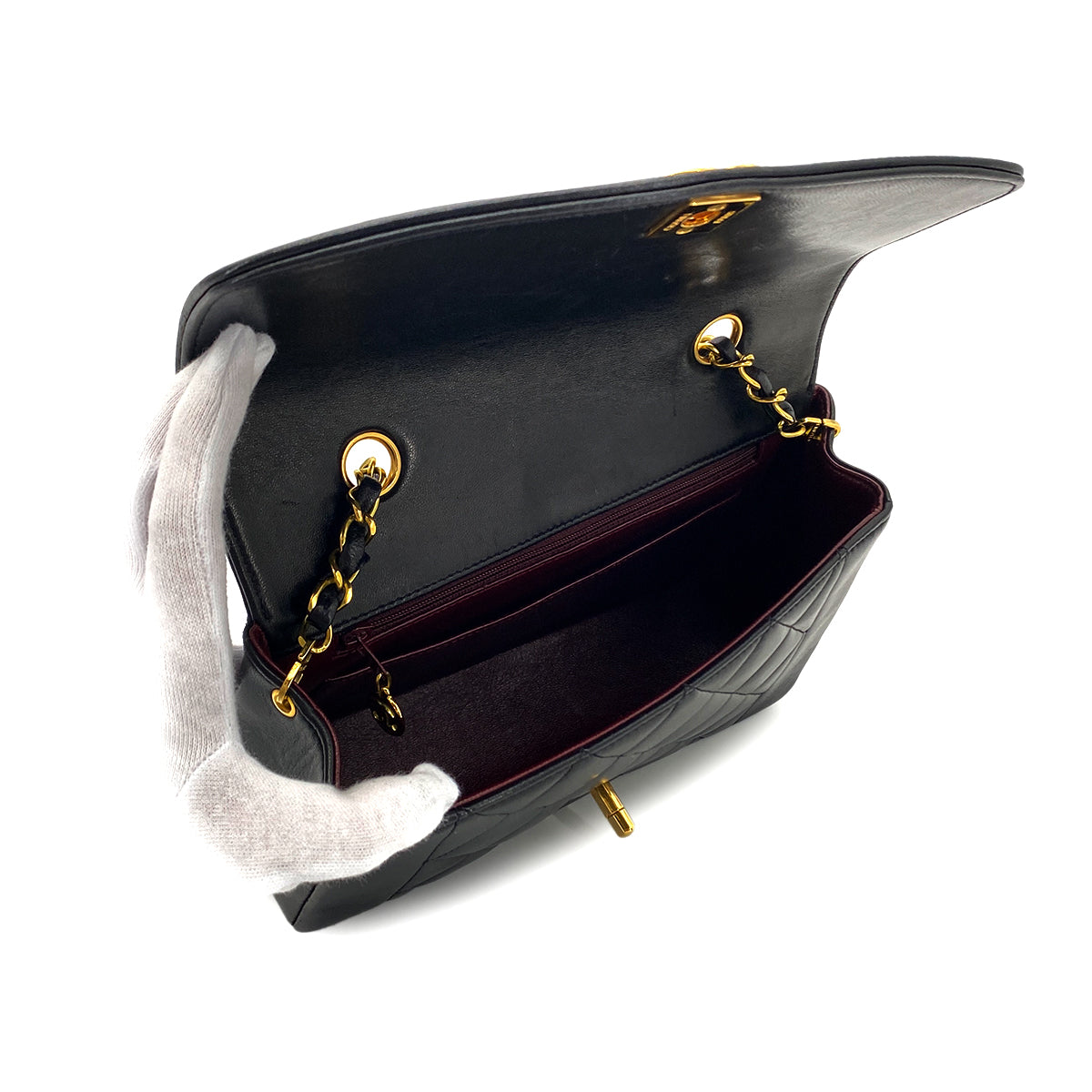 CHANEL VINTAGE DIANA SMALL CHAIN SHOULDER BAG BLACK LAMB SKIN 90282748