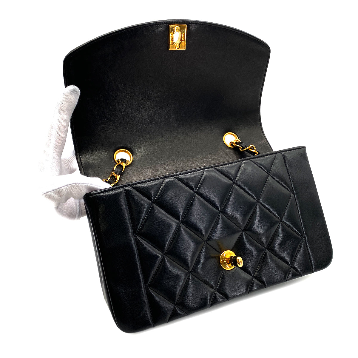 CHANEL VINTAGE DIANA SMALL CHAIN SHOULDER BAG BLACK LAMB SKIN 90283117