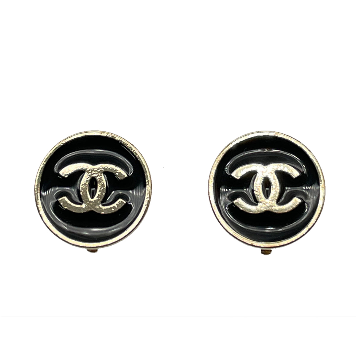 CHANEL VINTAGE EARRINGS COCO MARK BLACK ROUND ACCESSORY 90263136