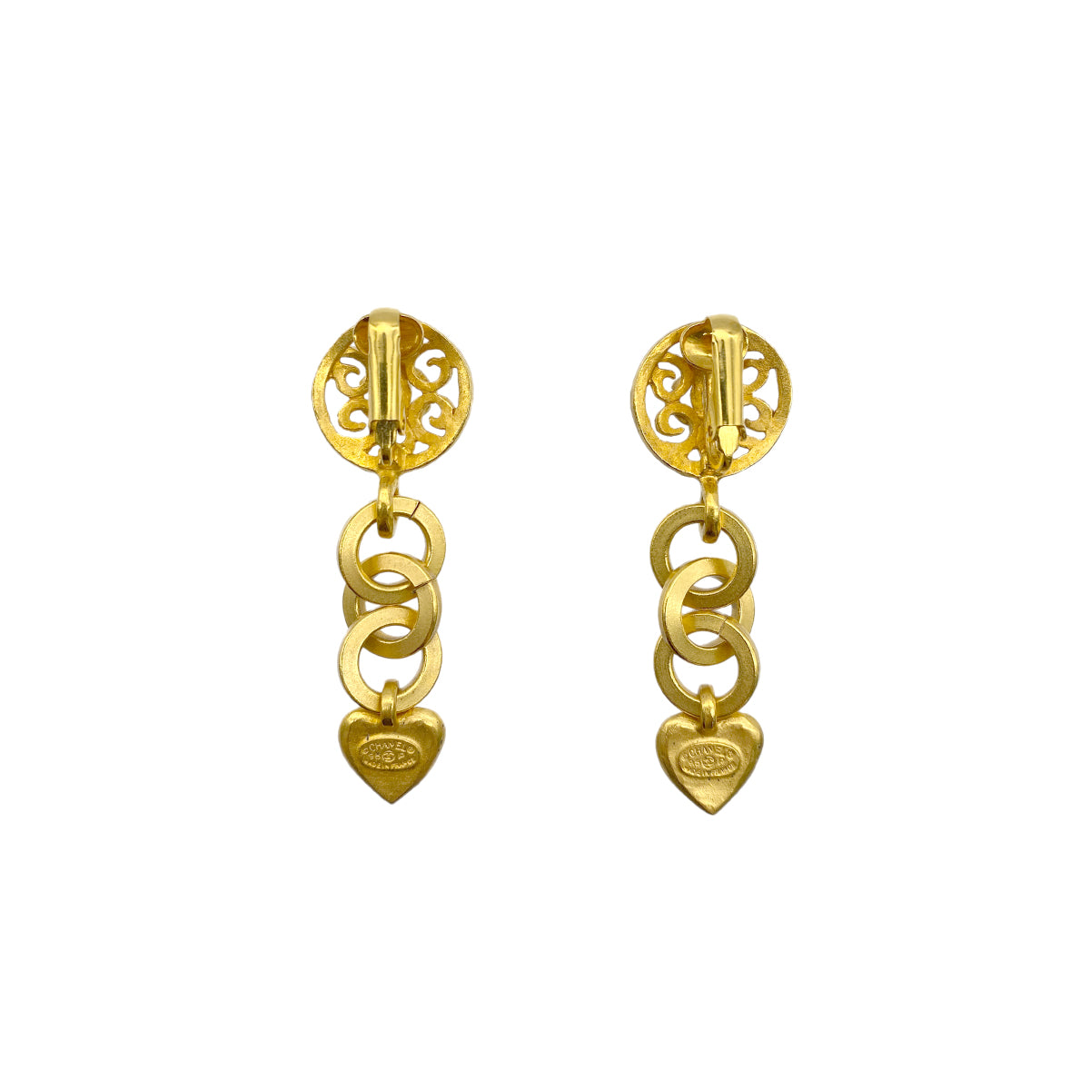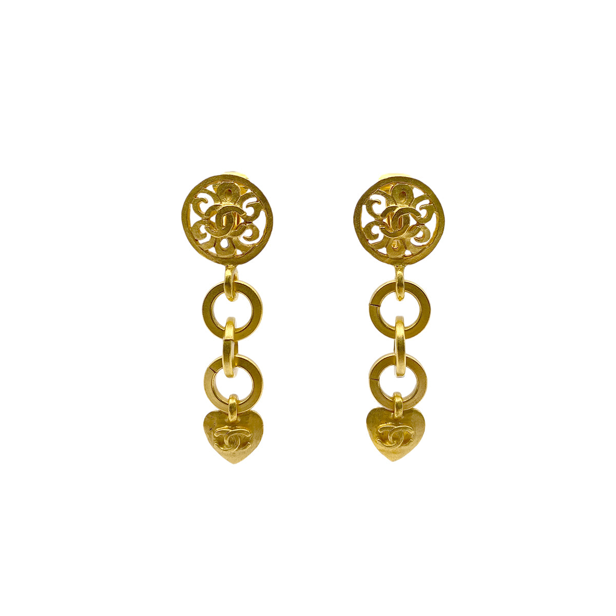 CHANEL VINTAGE EARRINGS COCOMARK HEART SWING ACCESSORY 95P 90274888