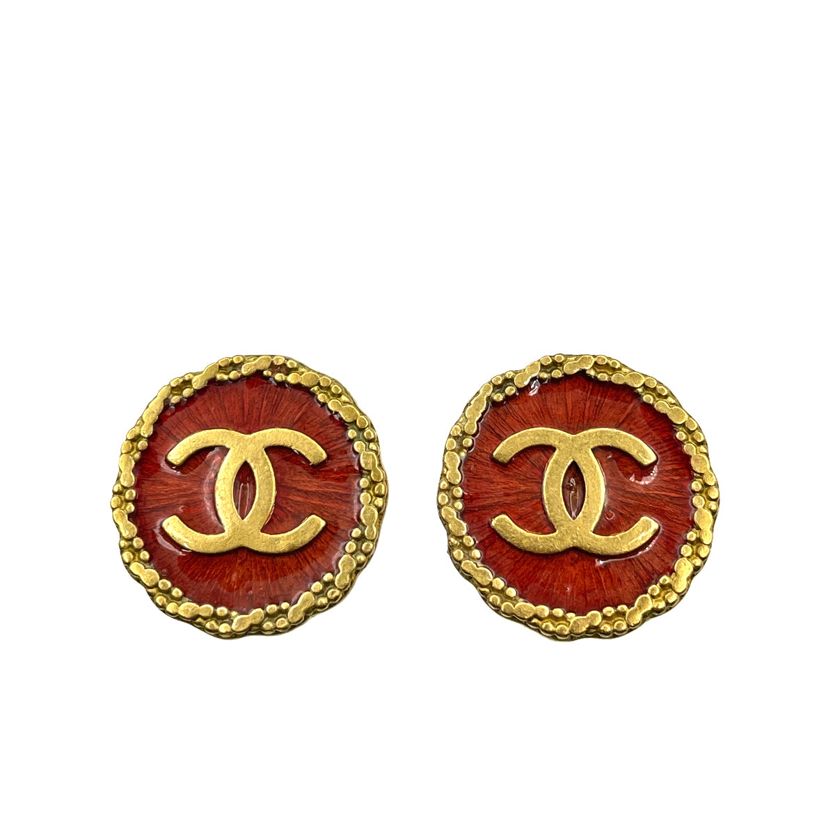 CHANEL VINTAGE EARRINGS COCOMARK RED ROUND ACCESSORY 95P 90262068