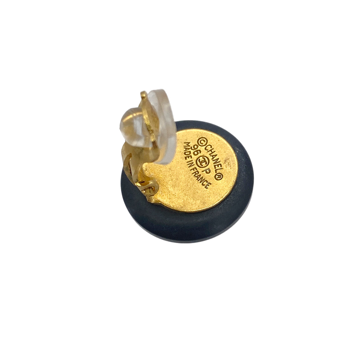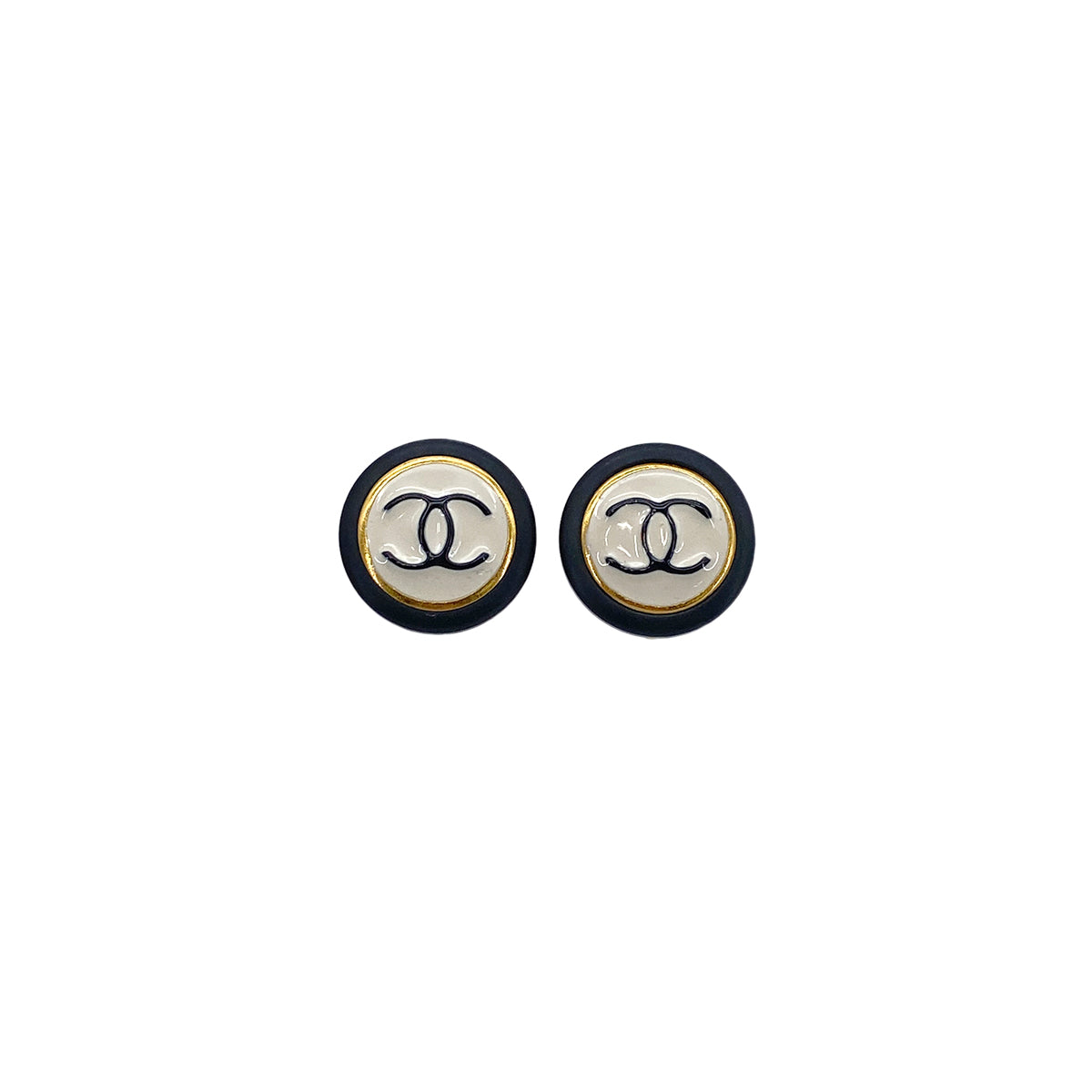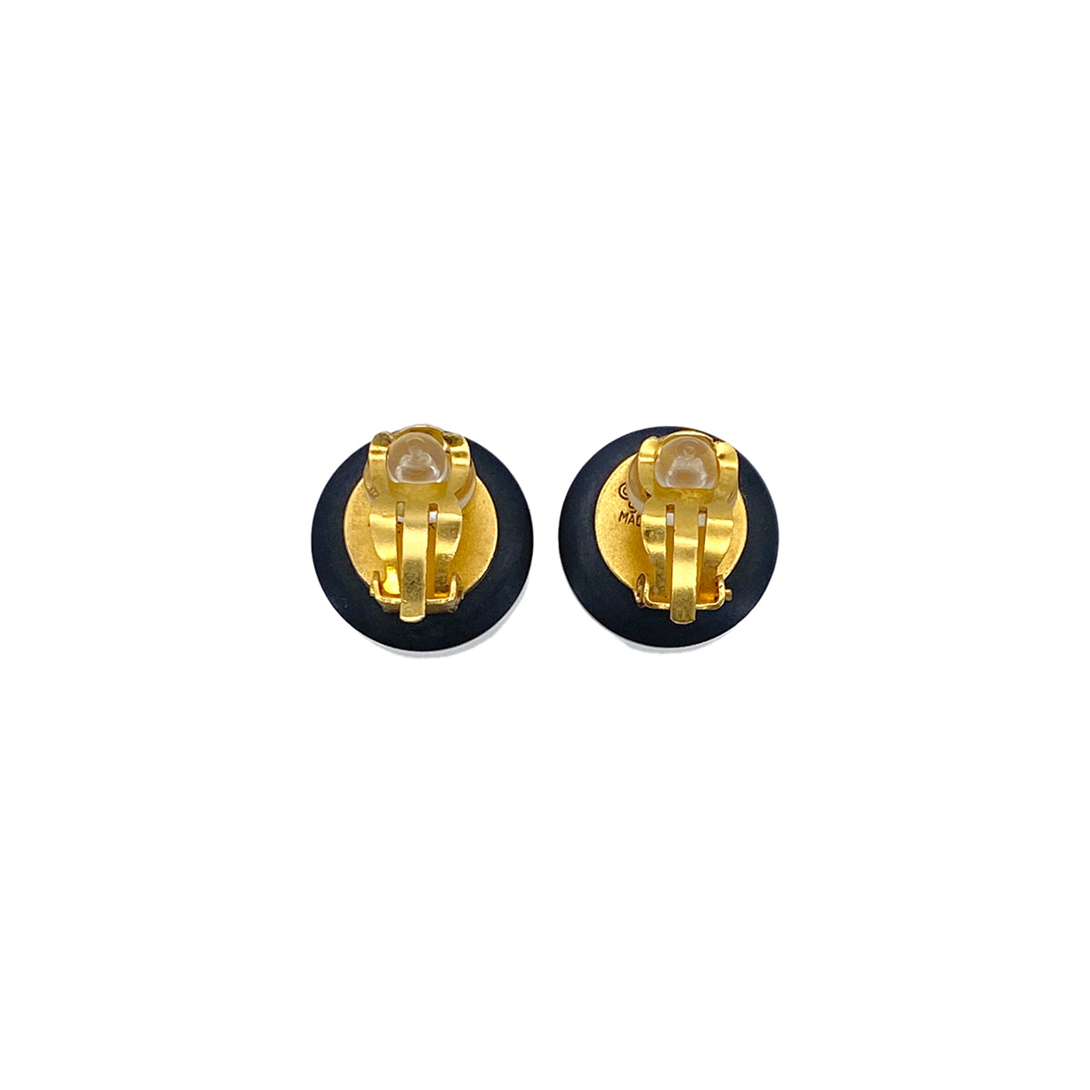 CHANEL VINTAGE EARRINGS COCOMARK ROUND BLACK WHITE GOLD ACCESSORY 96P 90295748