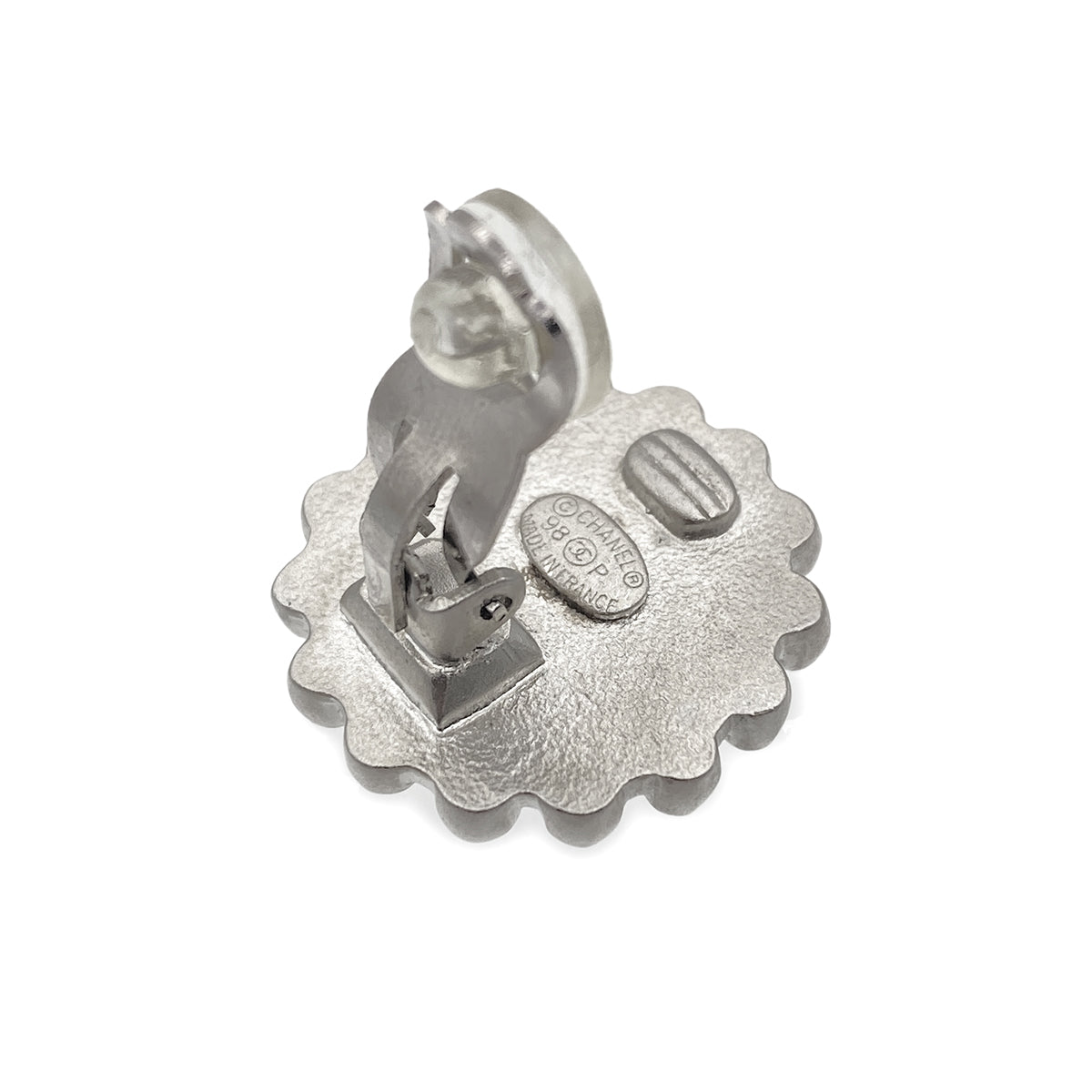 CHANEL VINTAGE EARRINGS COCOMARK ROUND SILVER ACCESSORY 98P 90271839