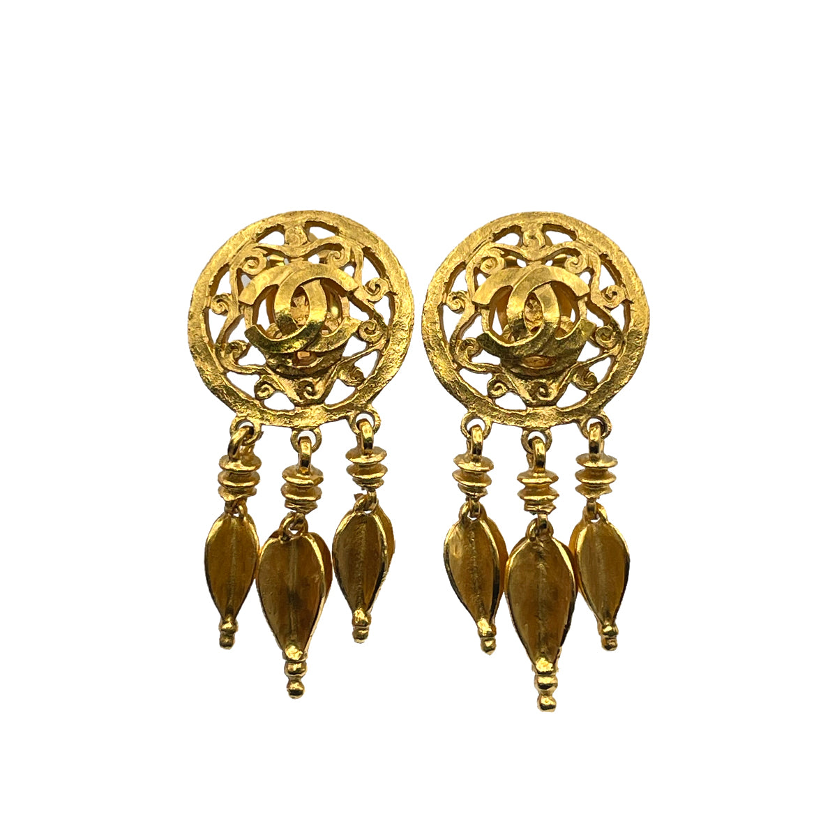 CHANEL VINTAGE EARRINGS COCOMARK SWING GOLD ACCESSORY 95P 90263138