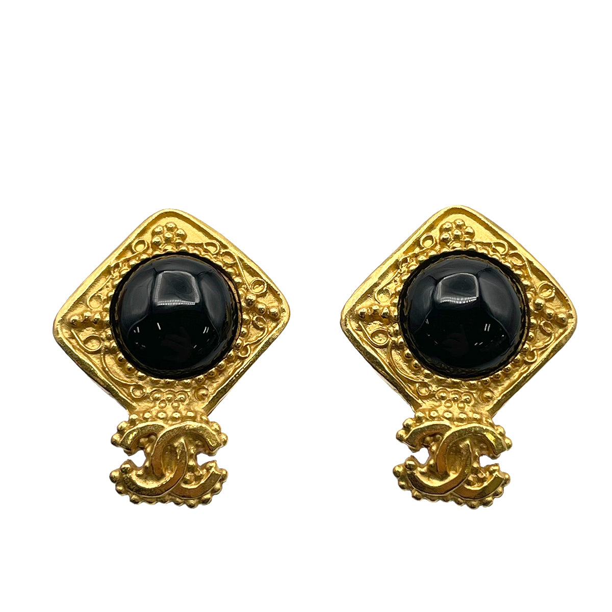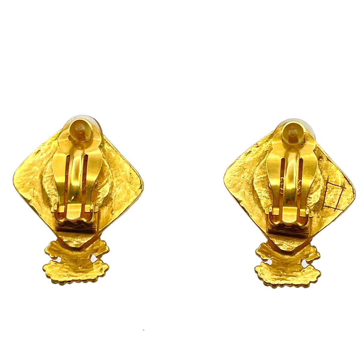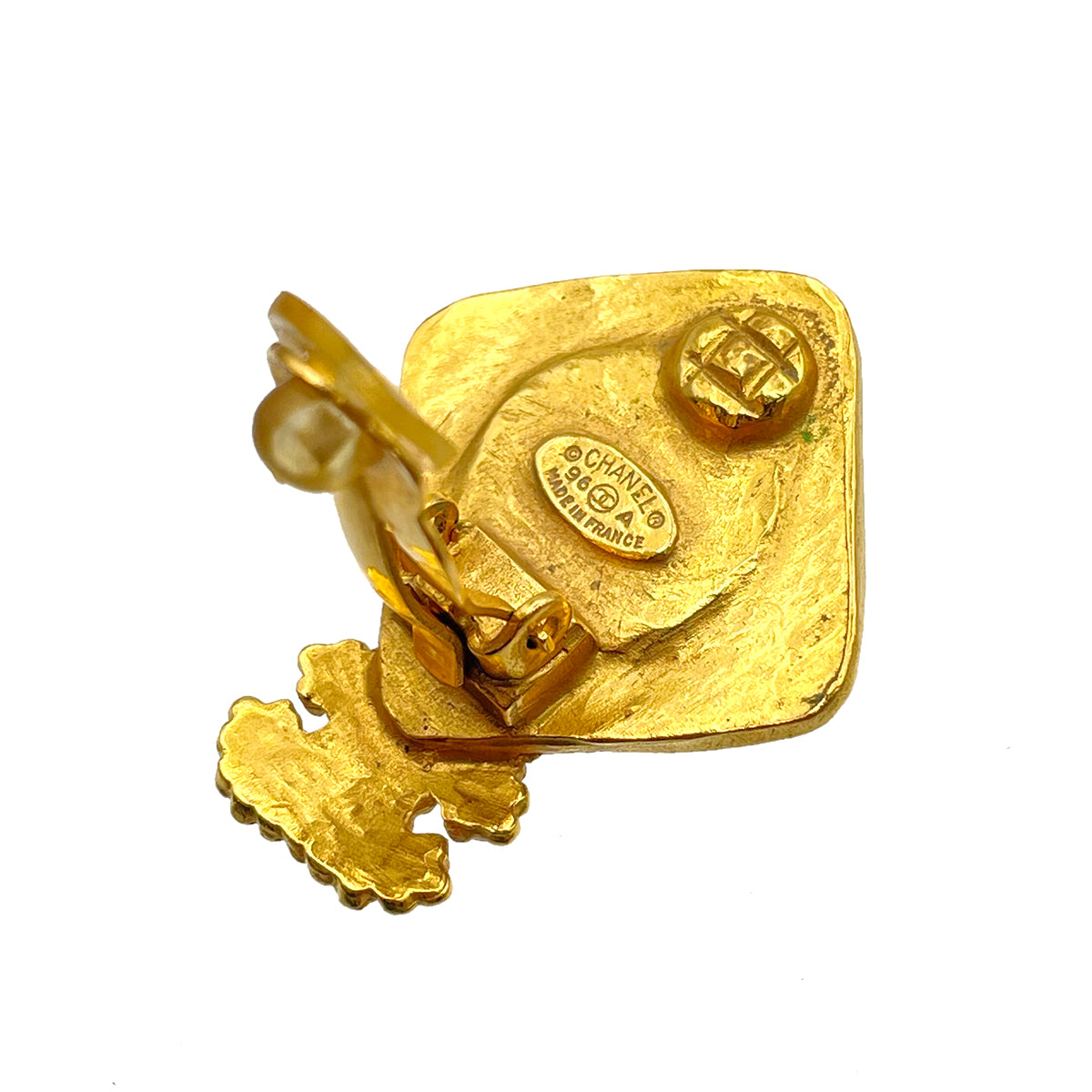 CHANEL VINTAGE EARRINGS GRIPOIX COCO MARK GOLD ACCESSORY 95A 90263663