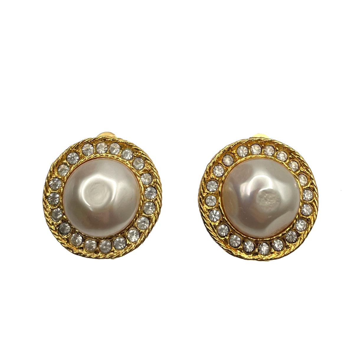 CHANEL VINTAGE EARRINGS ROUND PEARL MOTIF RHINESTONE ACCESSORY 90263169