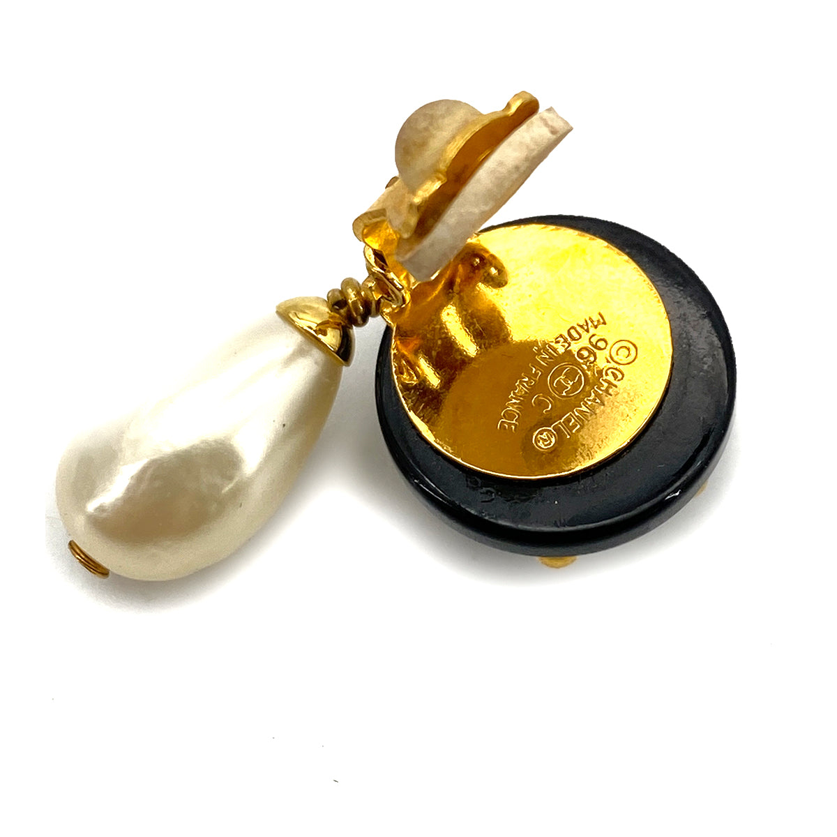 CHANEL VINTAGE EARRINGS SWING FAUX PEARL 96C 90261343