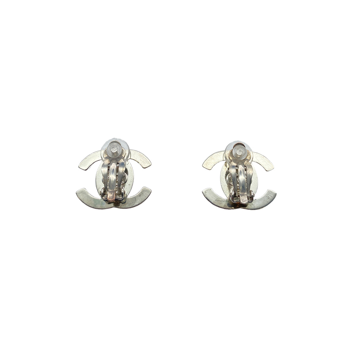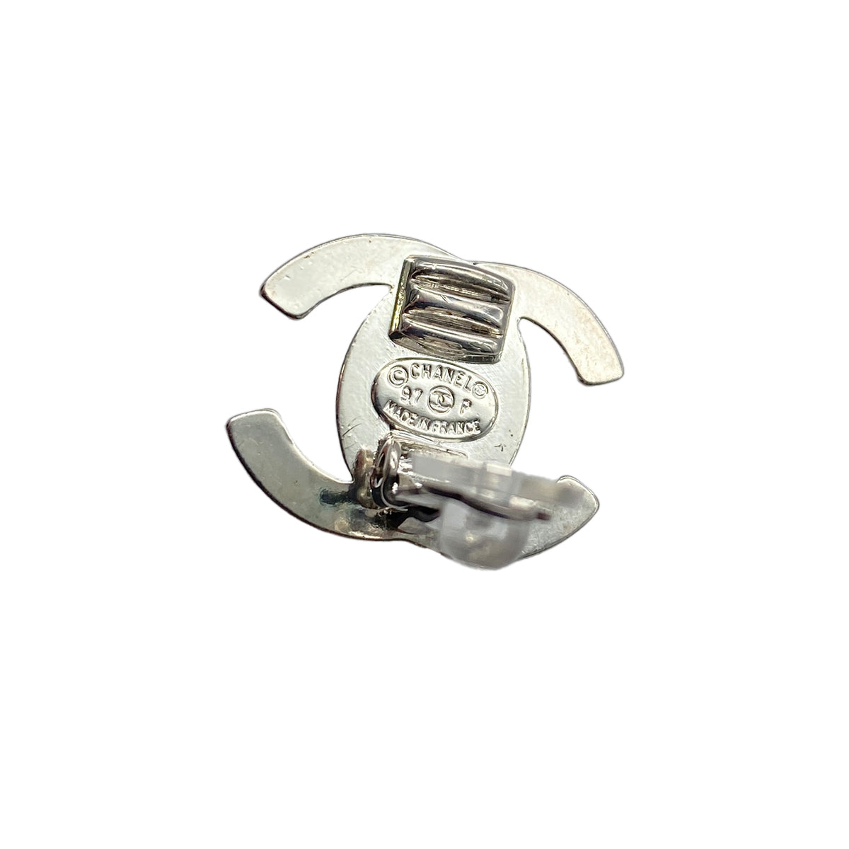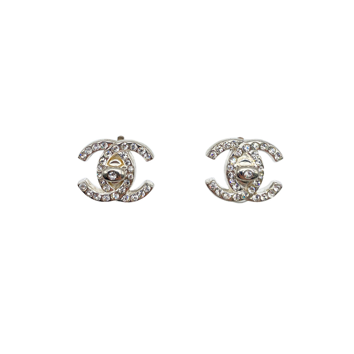 CHANEL VINTAGE EARRINGS TURN LOCK RHINESTONE SILVER ACCESSORY 97P 90274884