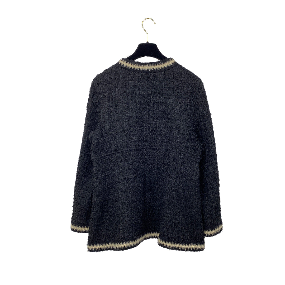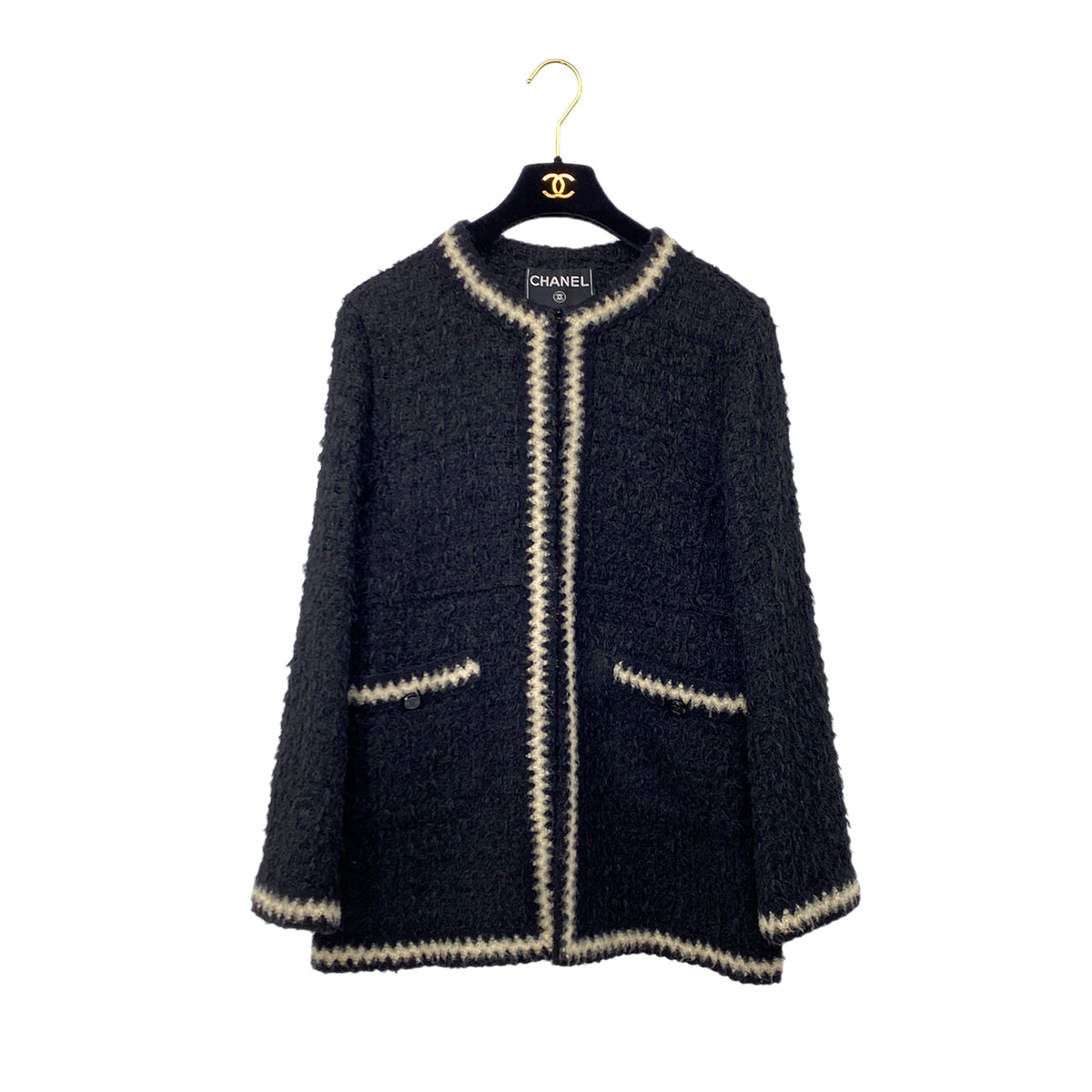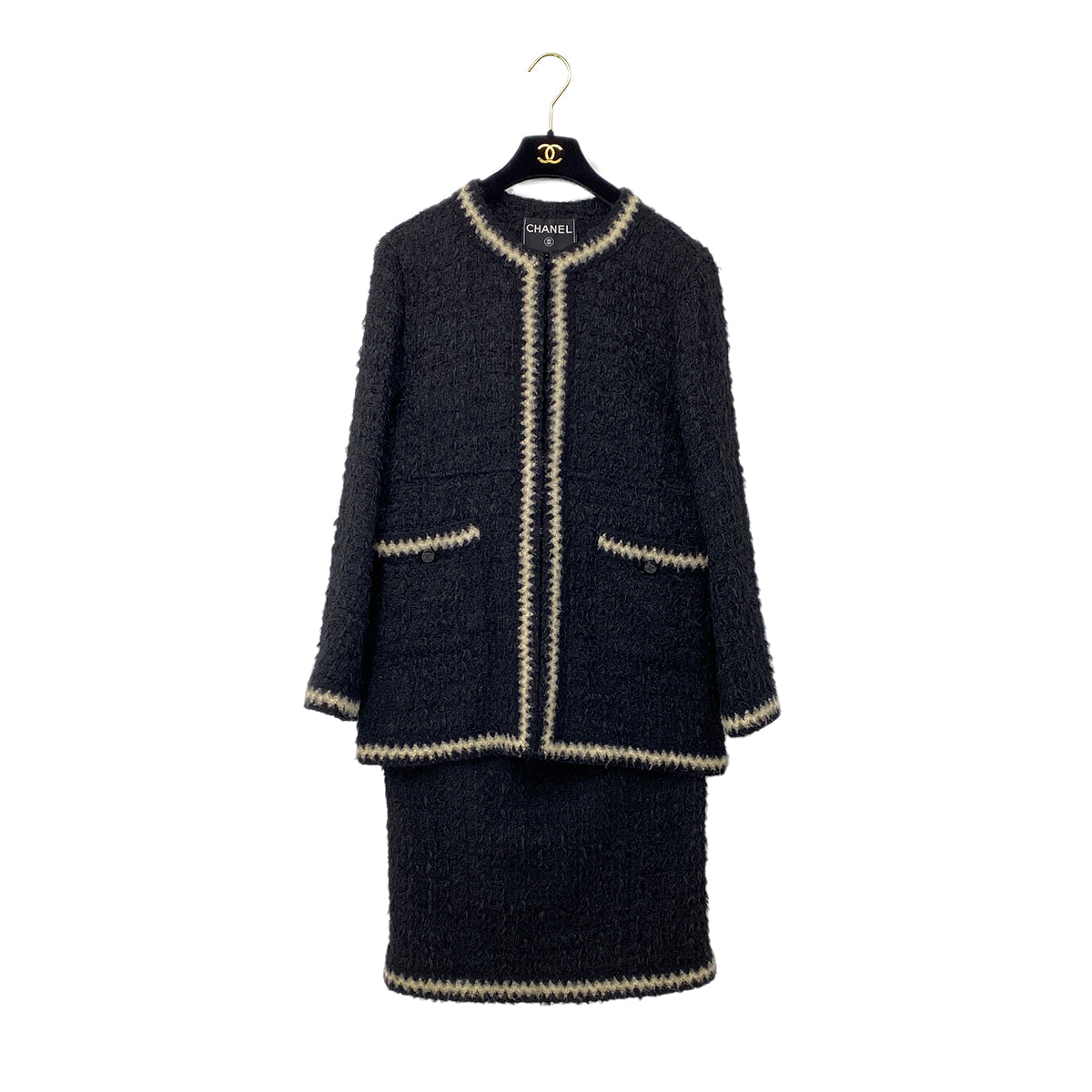 CHANEL VINTAGE JACKET SKIRT SET COCO BUTTON BLACK POLYESTER 42 98A RTW 90284035