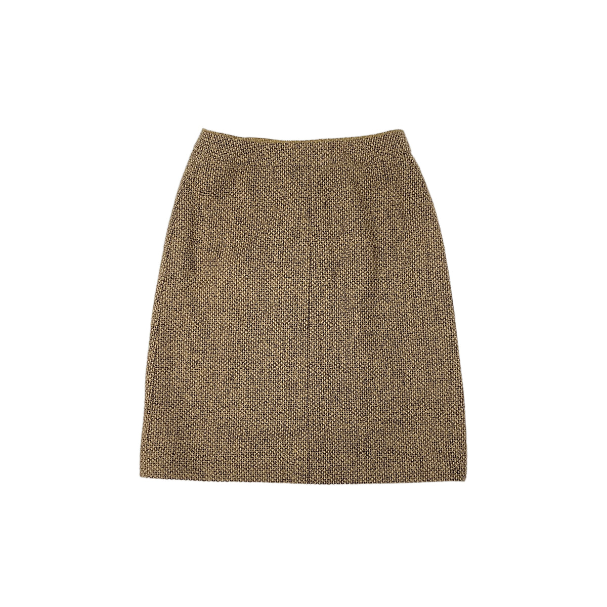CHANEL VINTAGE JACKET TOPS SKIRT SET COCO BUTTON GOLD BEIGE WOOL 38 96A RTW 90283145