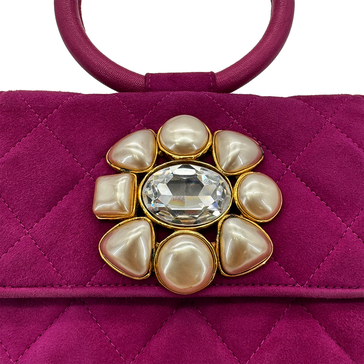 CHANEL VINTAGE MATELASSE BIJOU RHINESTONE FAUX PEARL HAND BAG PURPLE SUEDE 90285197