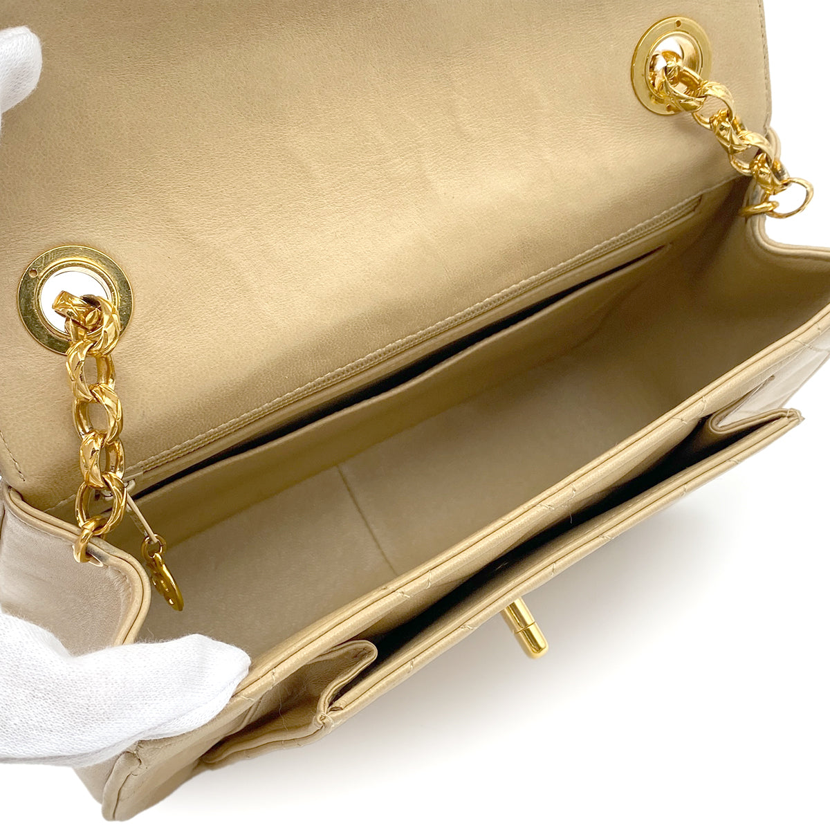 CHANEL VINTAGE MATELASSE BIJOU CHAIN SHOULDER BAG BEIGE LAMB SKIN 90272551