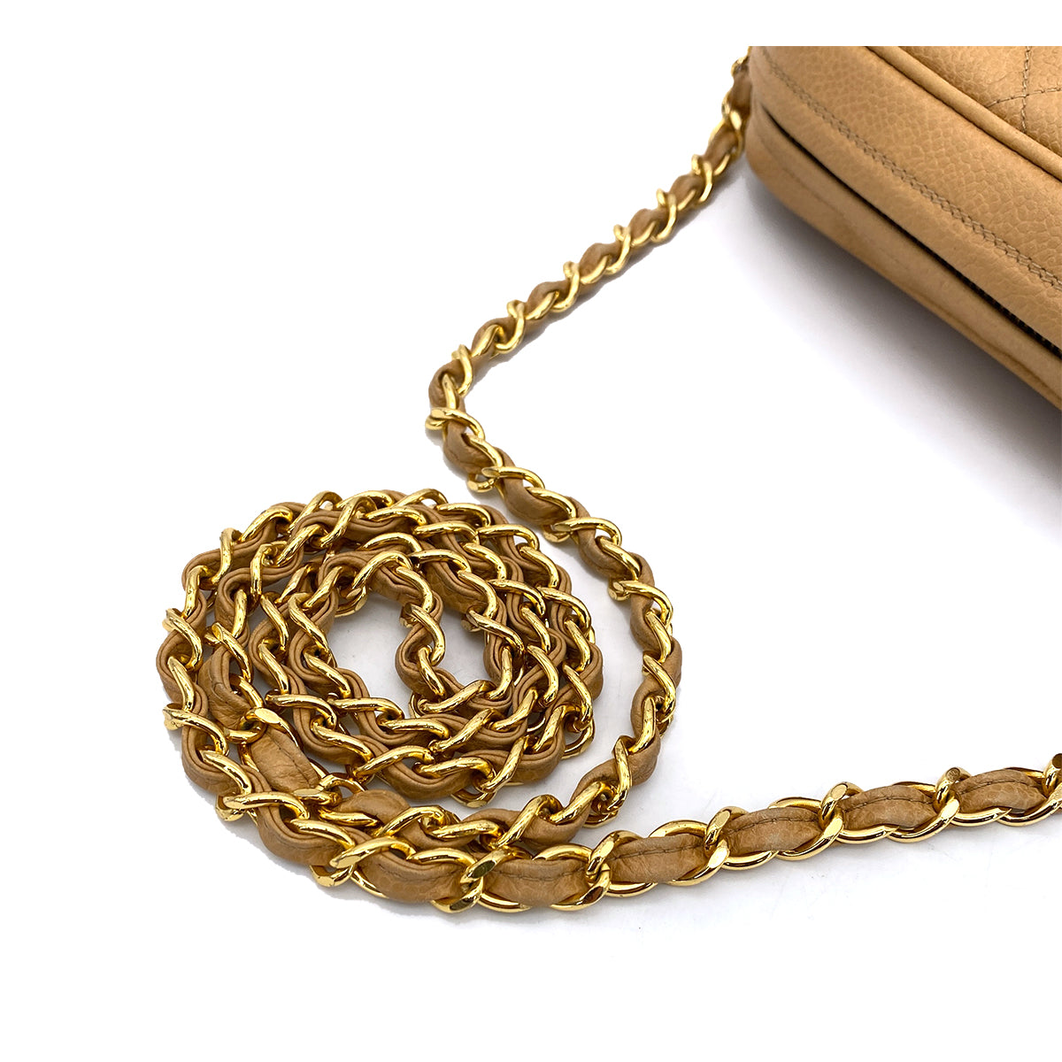 CHANEL VINTAGE MATELASSE CHAIN SHULDER BAG BEIGE CAVIAR SKIN 90260105