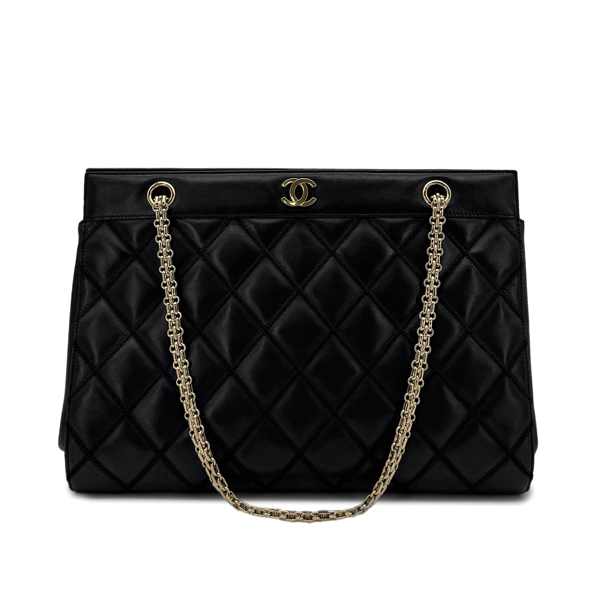 CHANEL VINTAGE MATELASSE COCOMARK CHAIN SHOULDER BAG BLACK LAMB SKIN 90284898