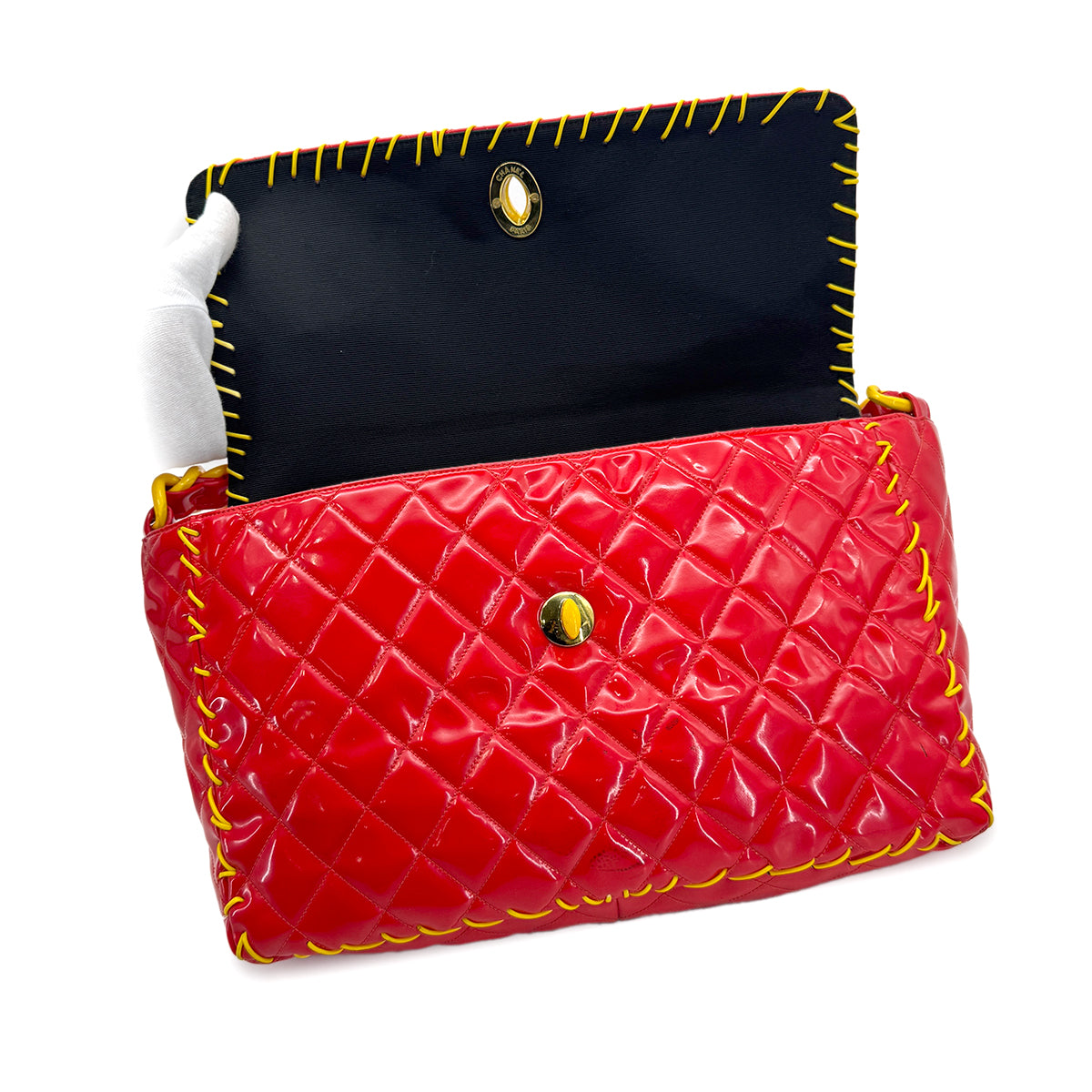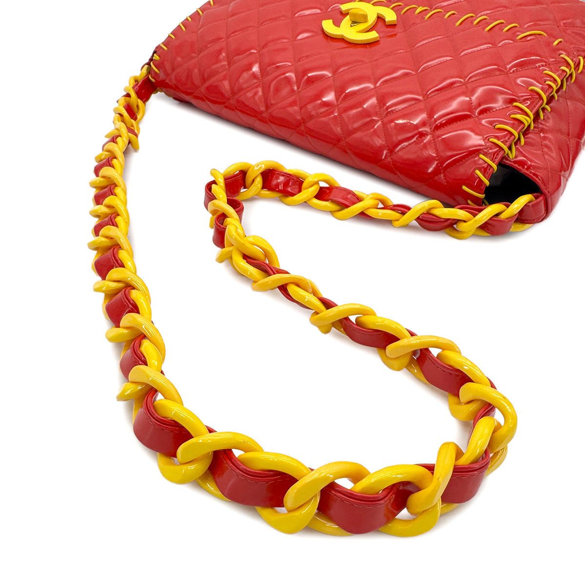 CHANEL VINTAGE MATELASSE PLASTIC CHAIN SHOULDER BAG RED YELLOW ENAMEL 90273388