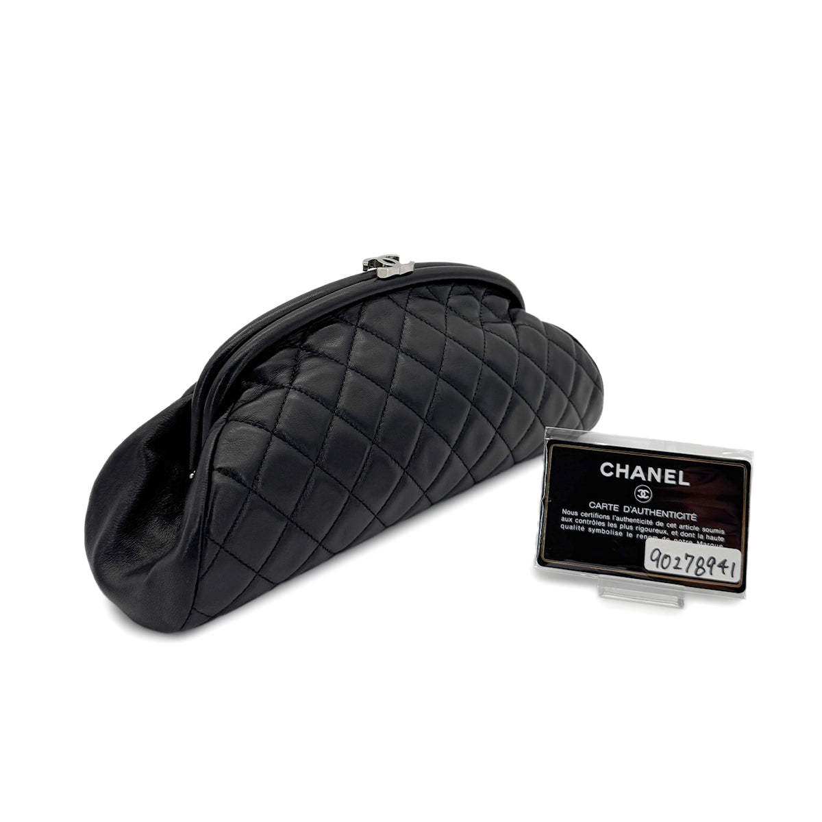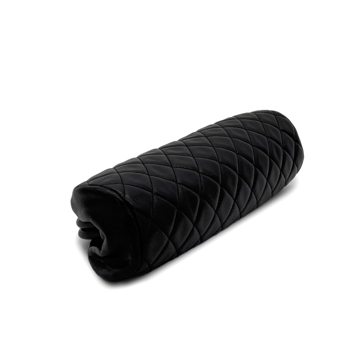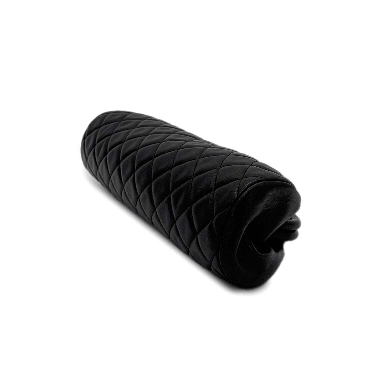 CHANEL VINTAGE MATELASSE SECOND POACH HAND BAG BLACK LAMB SKIN 90278941