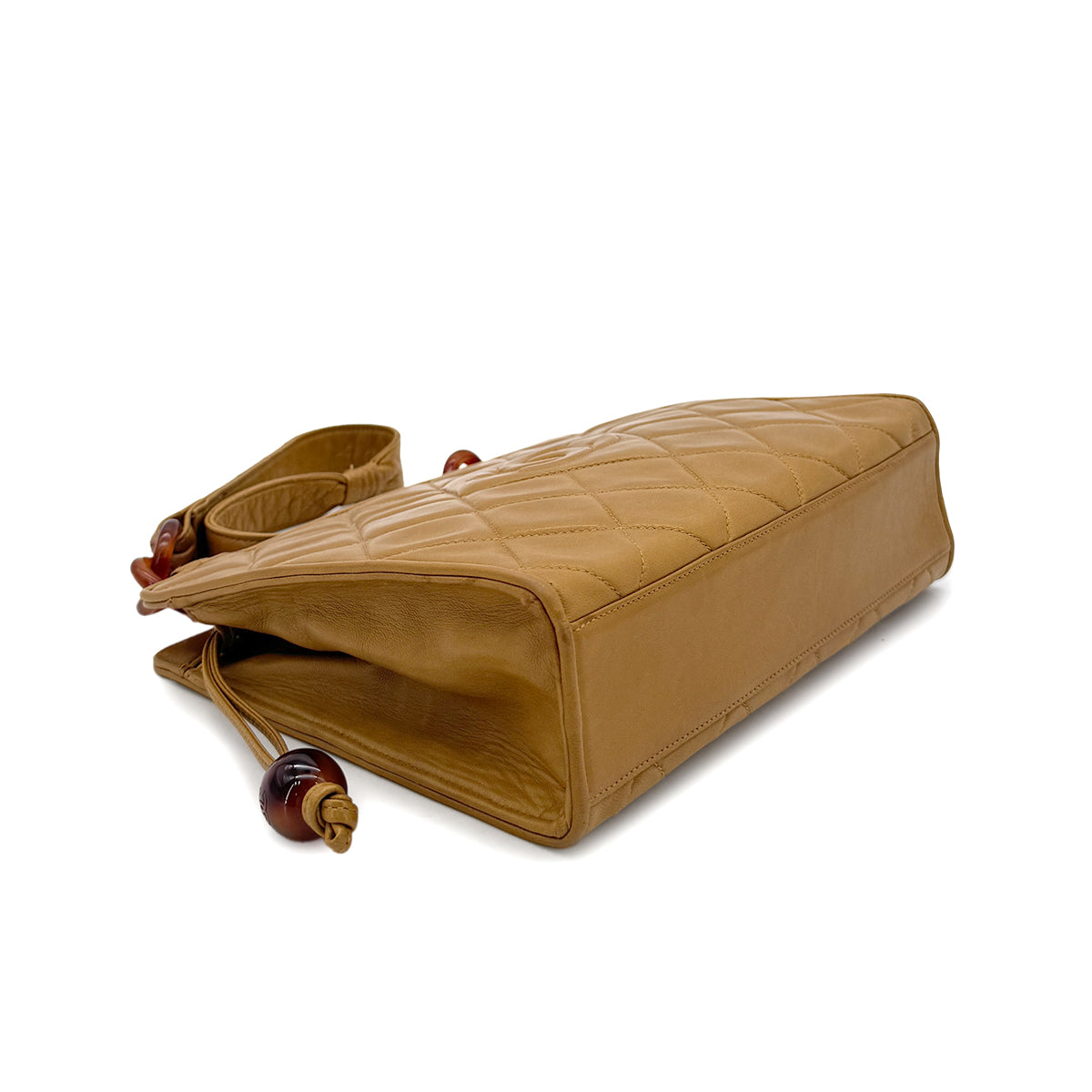 CHANEL VINTAGE MATELASSE TORTOISESHELL CHAIN SHOULDER BAG BEIGE LAMB SKIN 90286567
