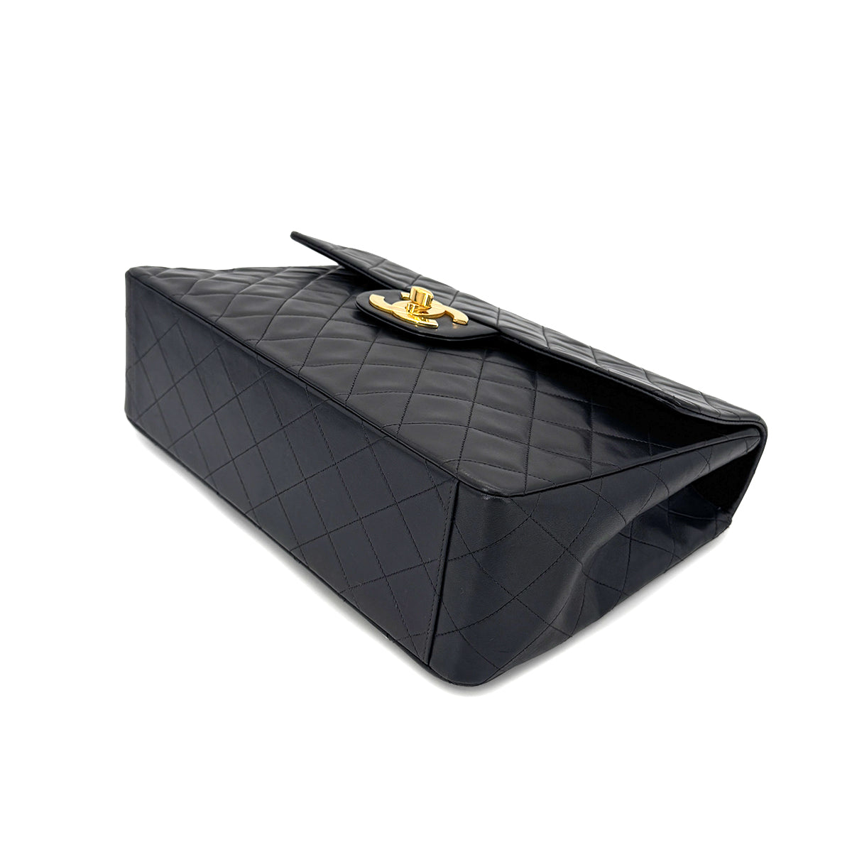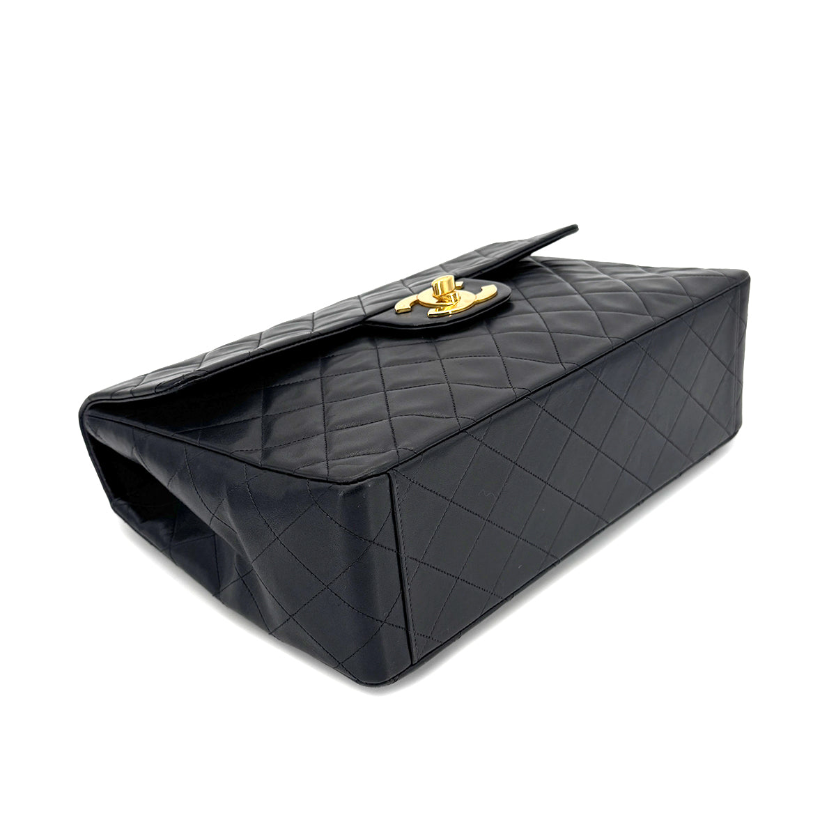 CHANEL VINTAGE MAXI MATELASSE 34 CHAIN SHOULDER BAG BLACK LAMB SKIN 90267437