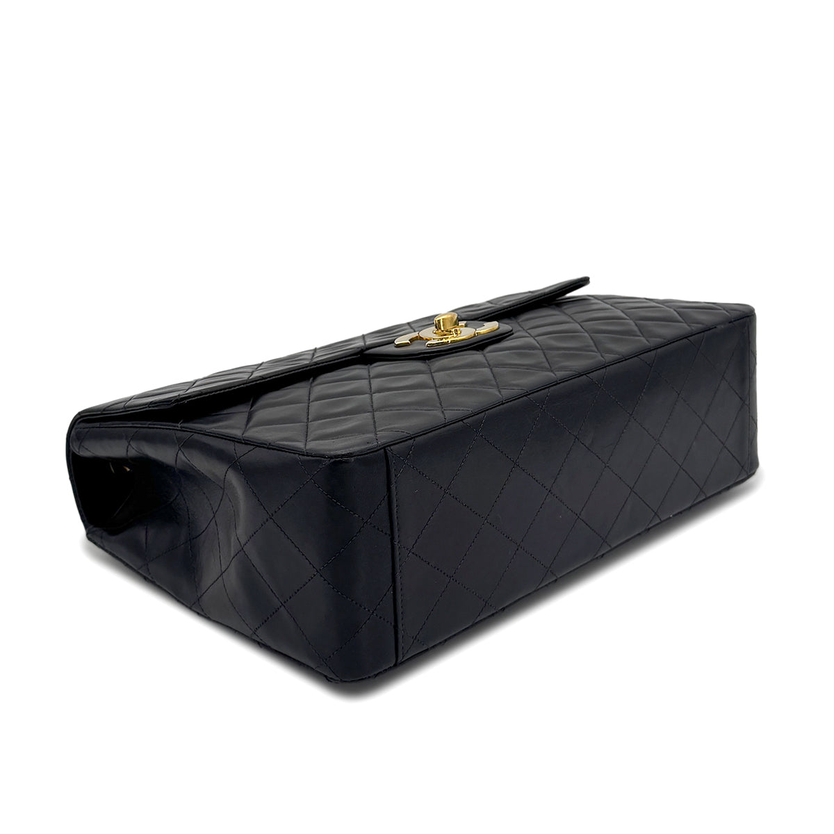 CHANEL VINTAGE MAXI MATELASSE 34 CHAIN SHOULDER BAG BLACK LAMB SKIN 90277293