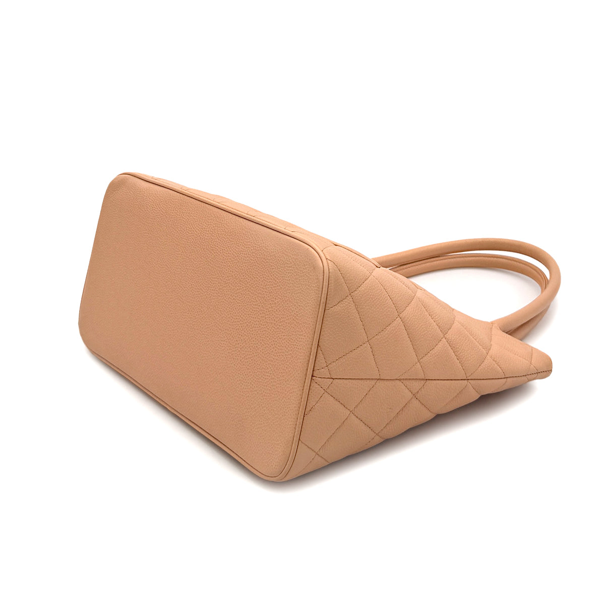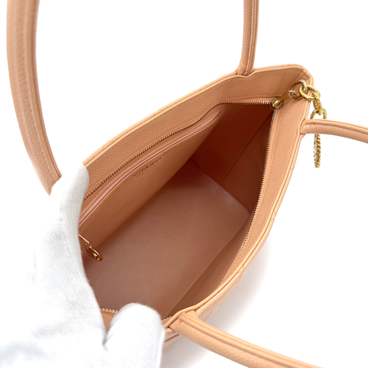 CHANEL VINTAGE MEDALLION TOTE BAG PINK BEIGE CAVIAR SKIN 90280510