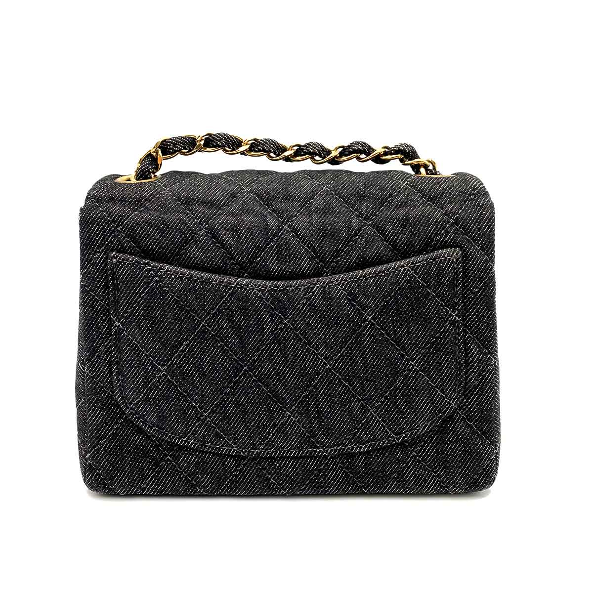 CHANEL VINTAGE MINI SQUARE 17 CHAIN SHOULDER BAG BLACK DENIM 90233432