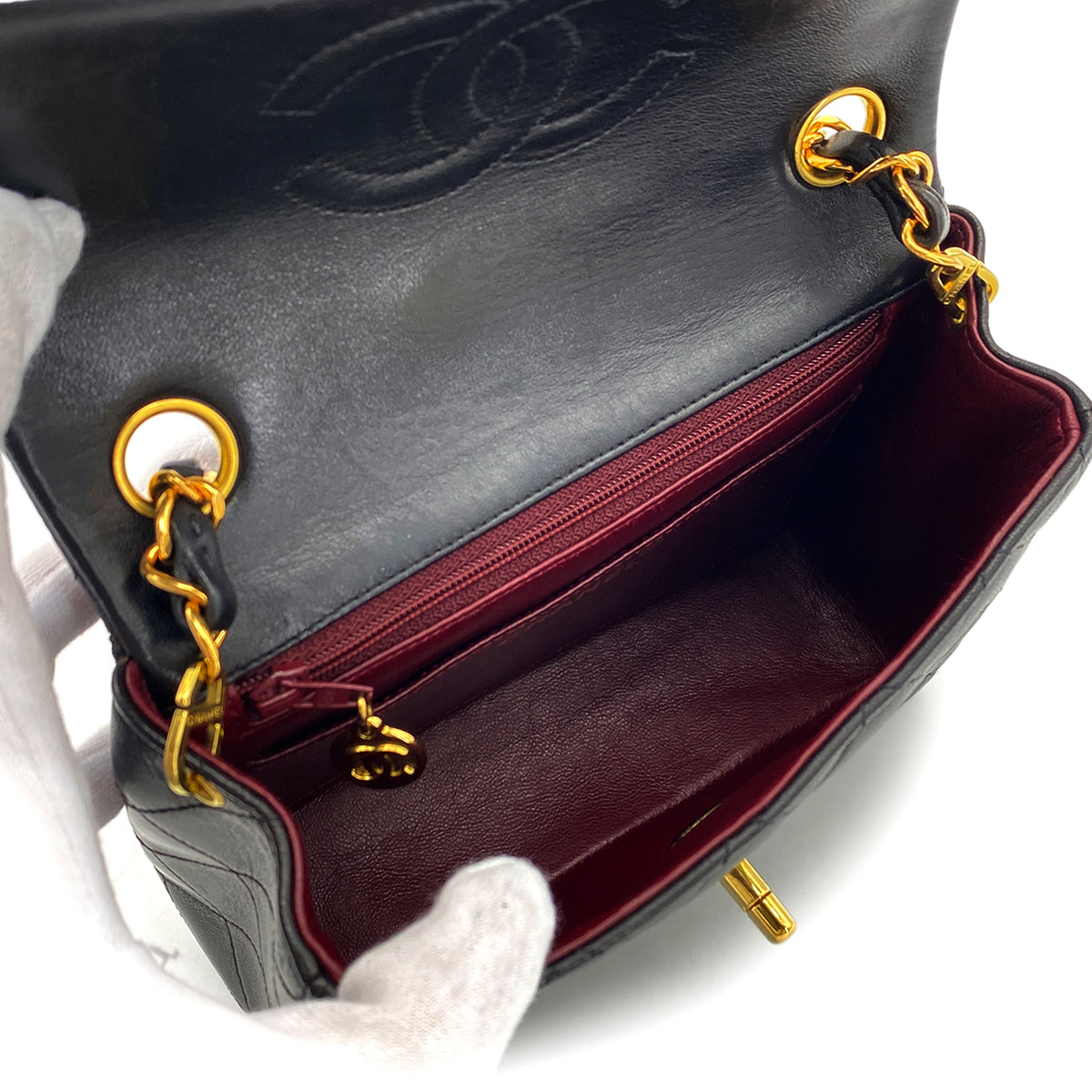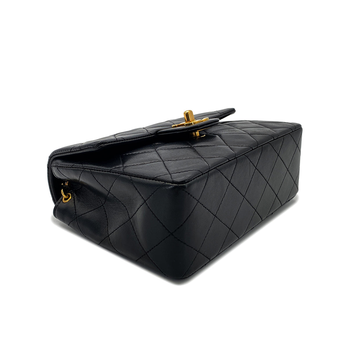 CHANEL VINTAGE MINI SQUARE 17 CHAIN SHOULDER BAG BLACK LAMB SKIN 90268814