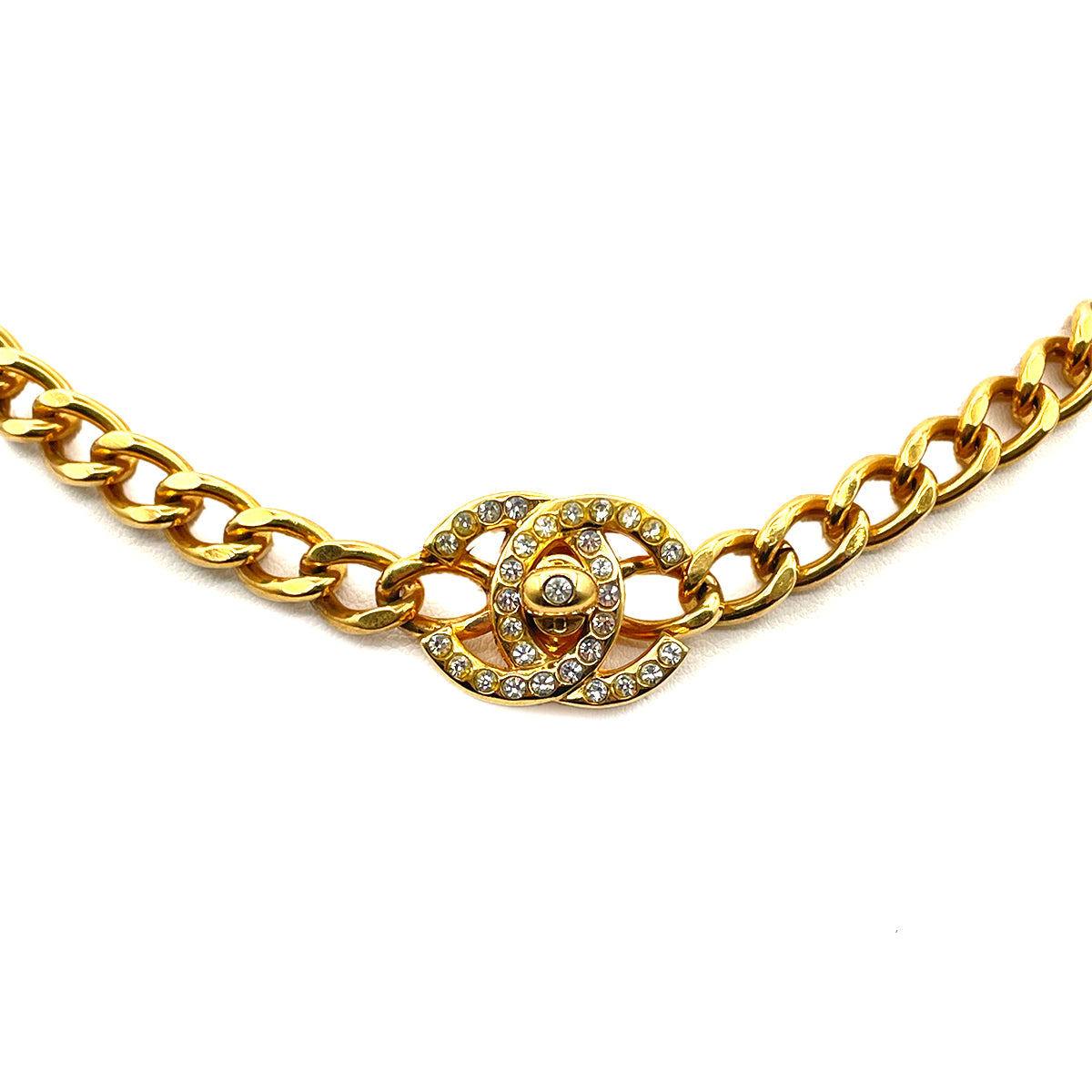 CHANEL VINTAGE NECKLACE COCOMARK RHINESTONE TURNLOCK ACCESSORY 96A 90262431