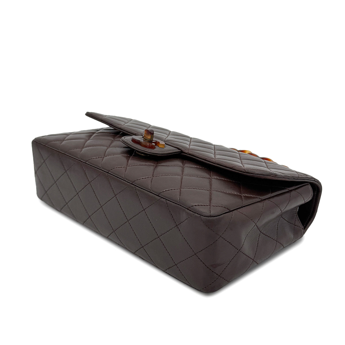 CHANEL VINTAGE TORTOISESHELL CHAIN SHOULDER BAG BROWN LAMB SKIN 90267375