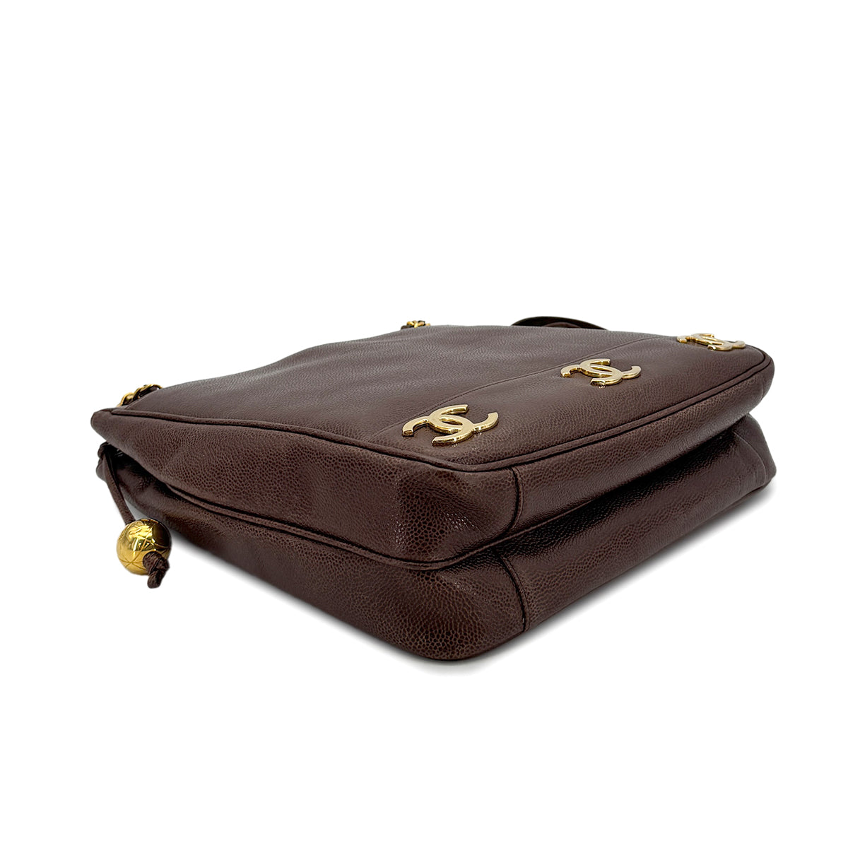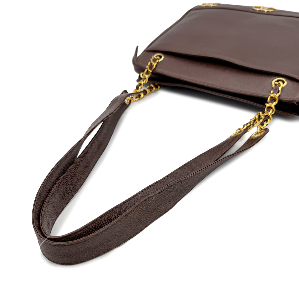 CHANEL VINTAGE TRIPLE COCO CHAIN TOTE BAG BROWN CAVIAR SKIN 90274859