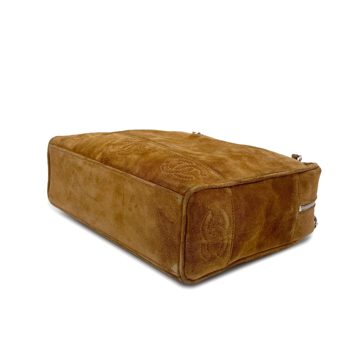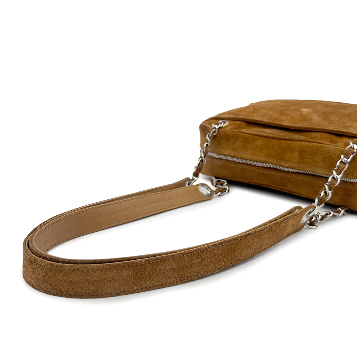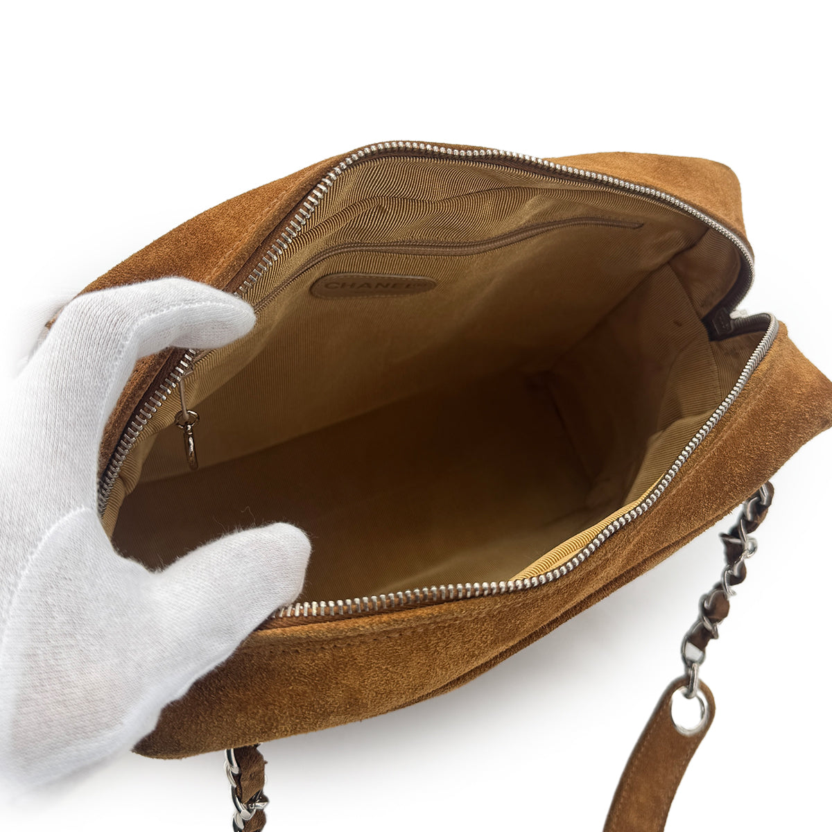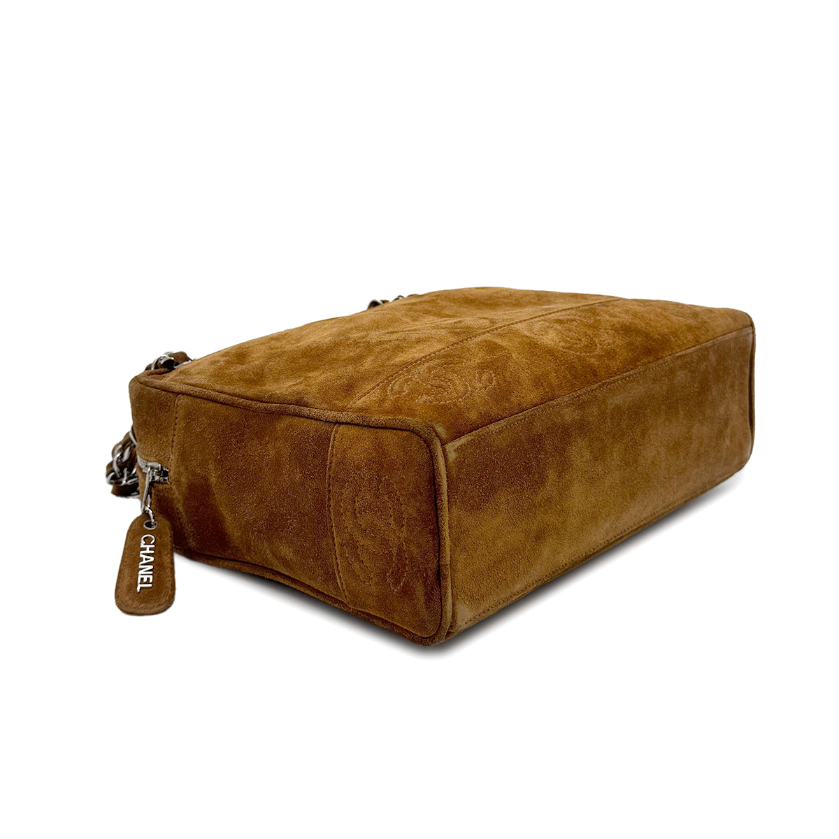 CHANEL VINTAGE TRIPLE COCO CHAIN SHOULDER BAG BROWN SUEDE 90273083