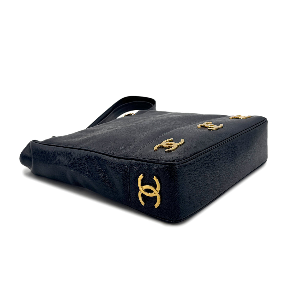 CHANEL VINTAGE TRIPLE COCO CHAIN TOTE BAG NAVY CAVIAR SKIN 90274045