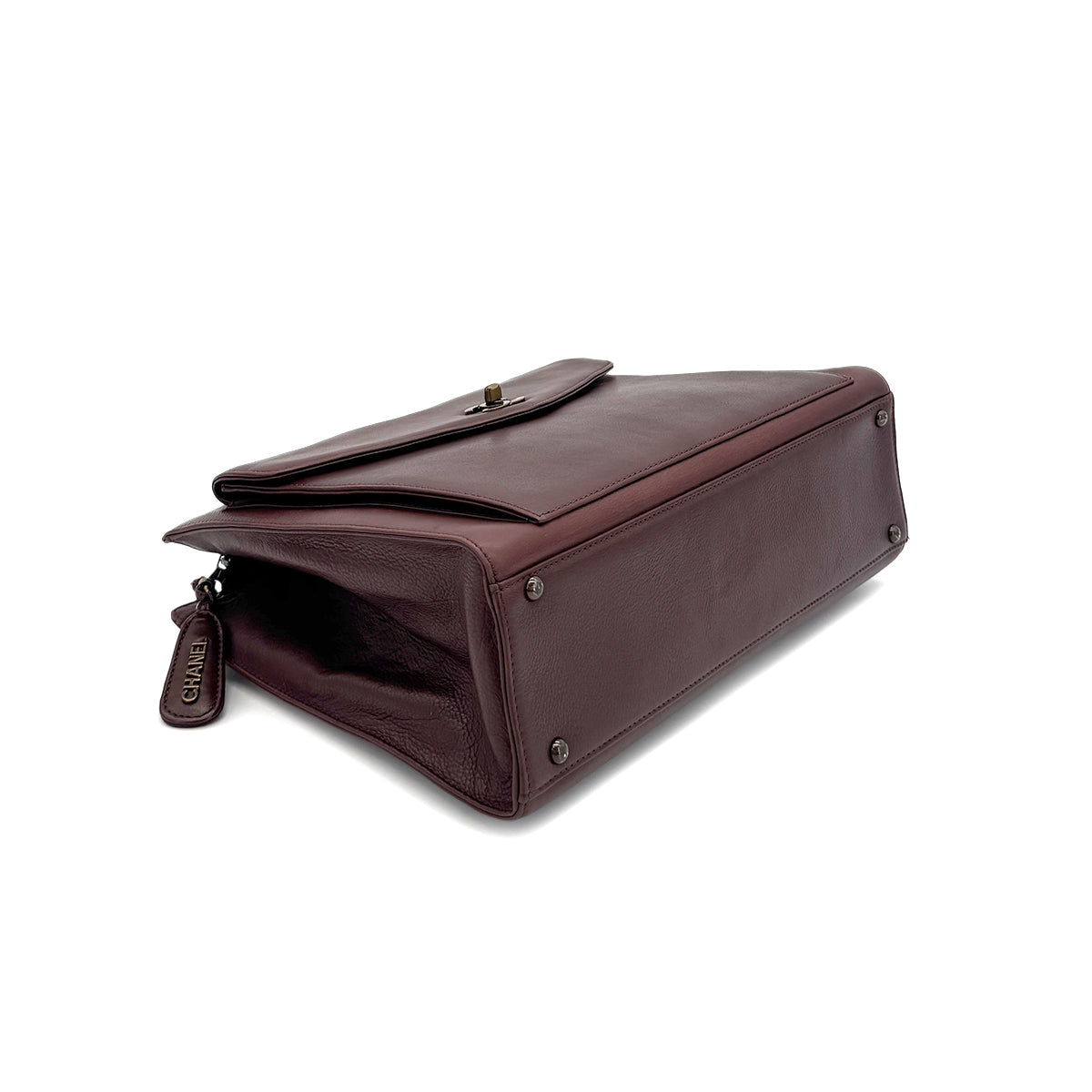CHANEL VINTAGE TURN LOCK CHAIN TOTE BAG BROWN LEATHER 90281232