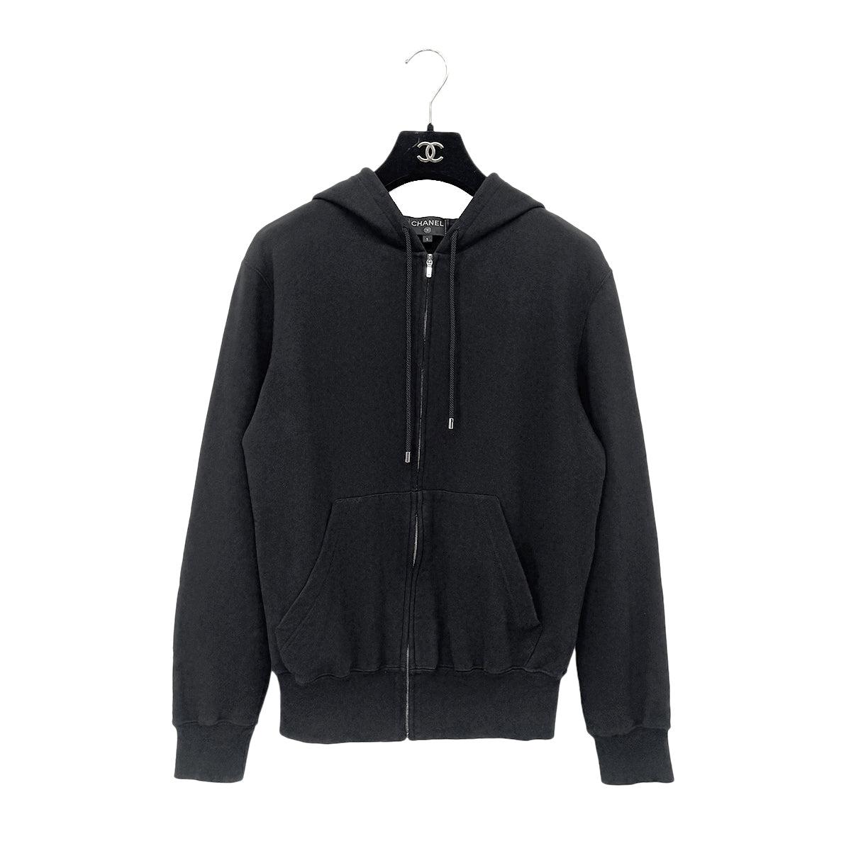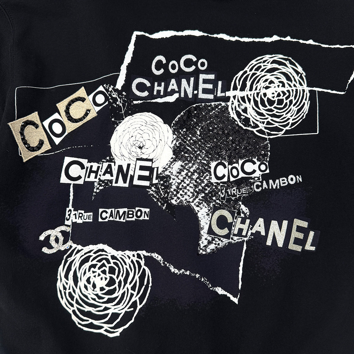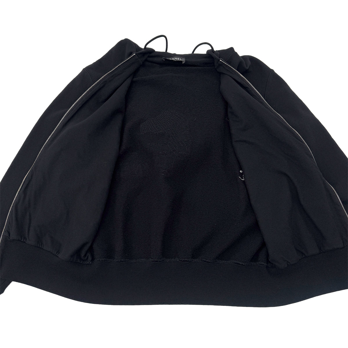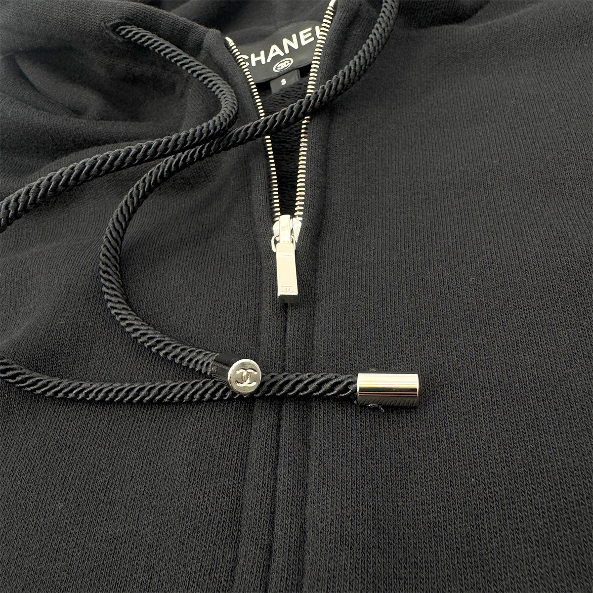 CHANEL ZIP HOODIE BACK COCO PARINT SEQUINS BLACK COTTON S P63 RTW 90286907