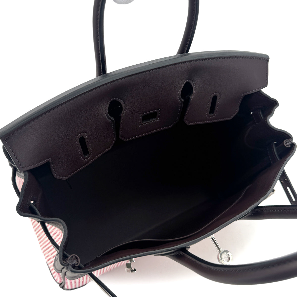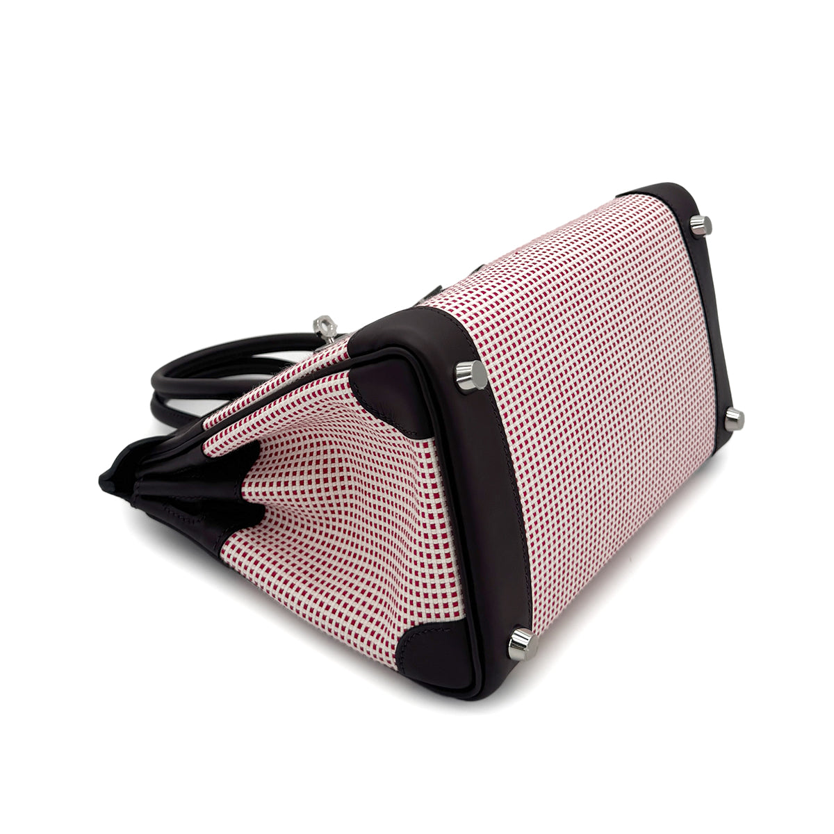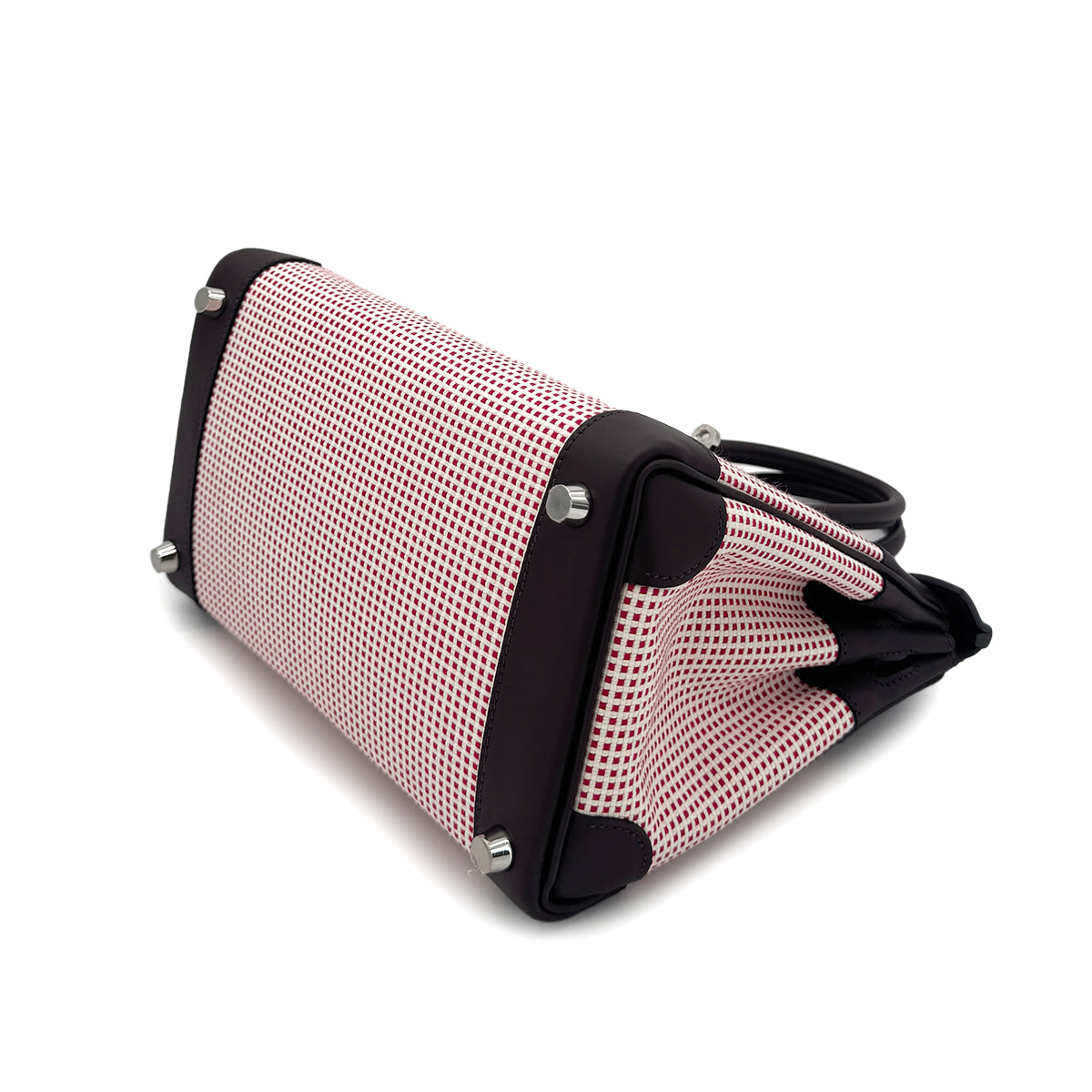 HERMES BIRKIN 25 ROUGE SELLIER ECRU FRAMBOISE VEAU SWIFT TOILE QUADRILLE HAND BAG B SHW 90294966