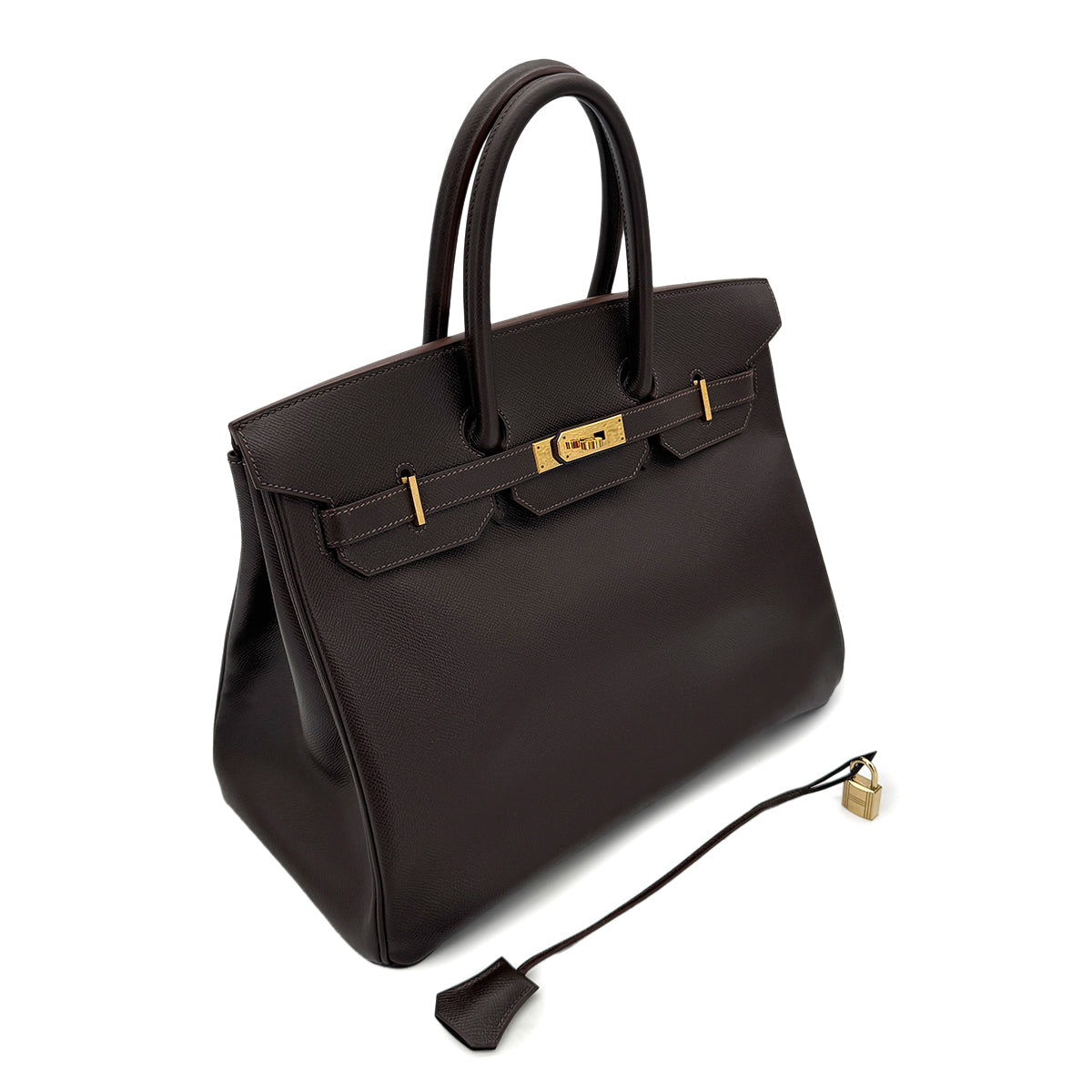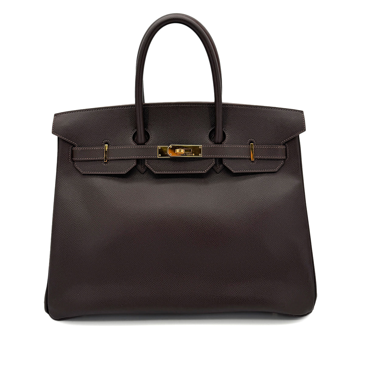 HERMES BIRKIN 35 CHOCOLAT COURCHEVEL HAND BAG □C GHW 90292879
