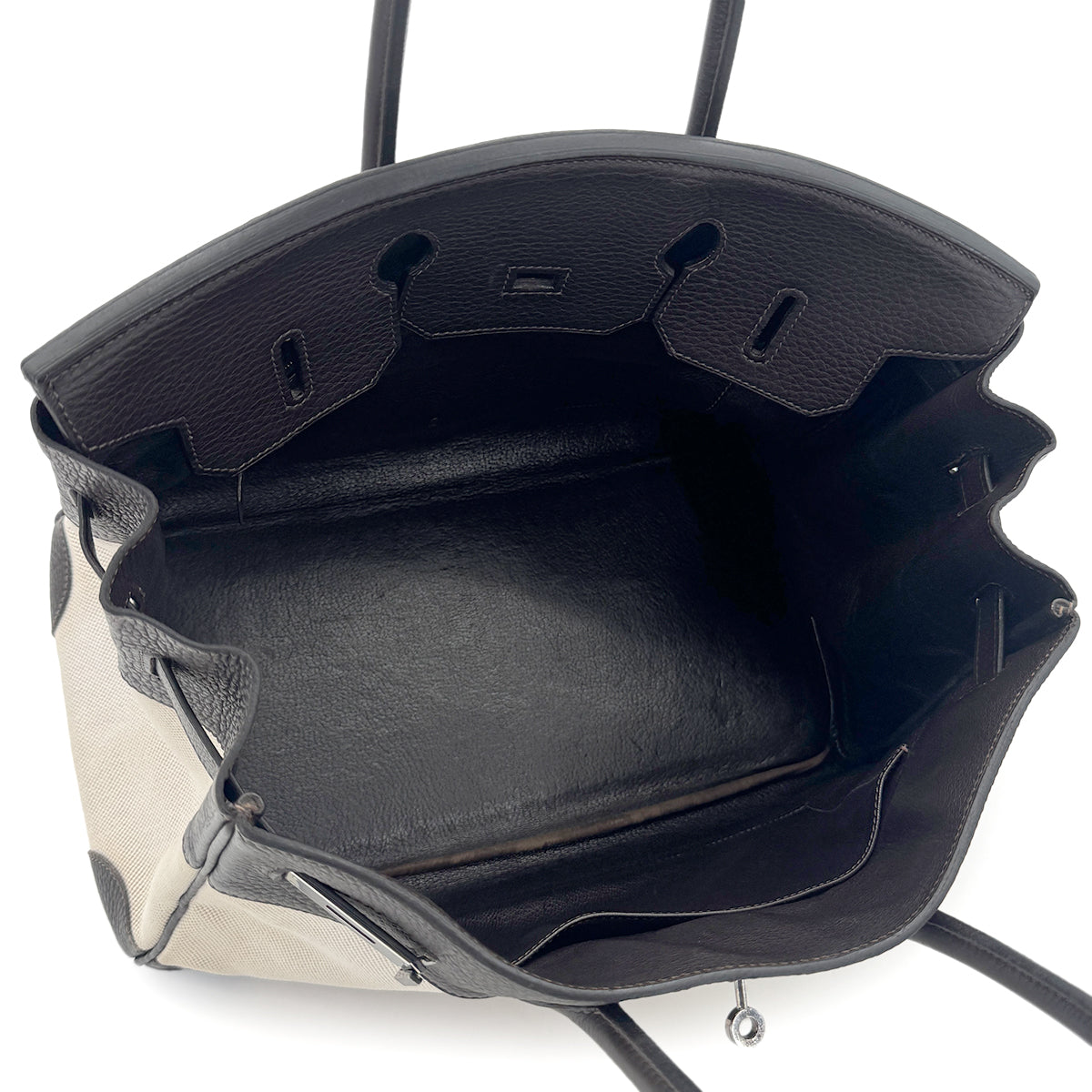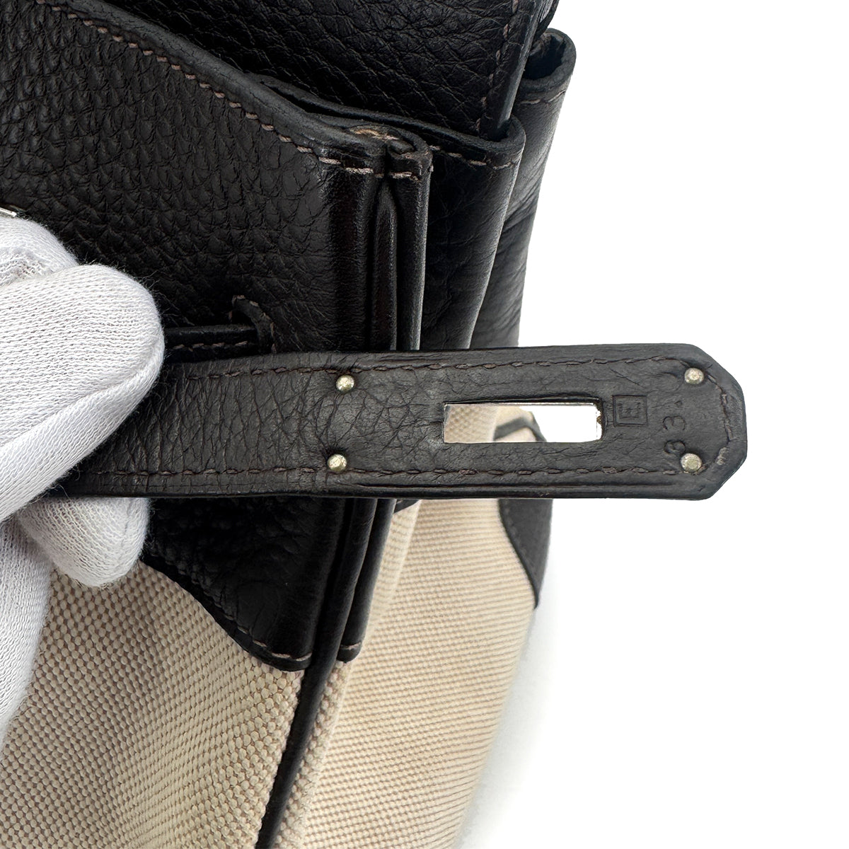 HERMES BIRKIN 35 EBENE TAURILLON CLEMENCE TOILE H HAND BAG □E SHW 90274430