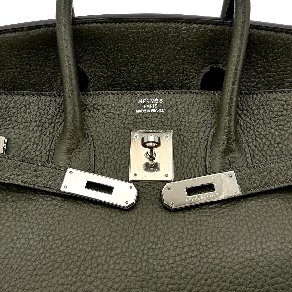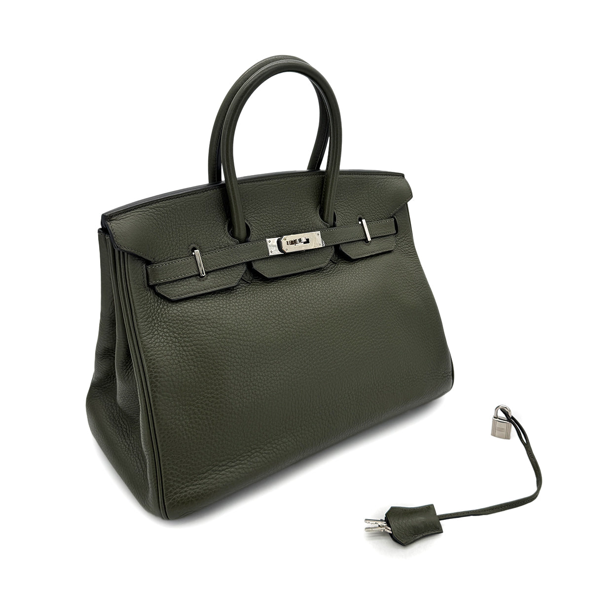 HERMES BIRKIN 35 VERT OLIVE TAURILLON CLEMENCE HAND BAG □E SHW 90293503