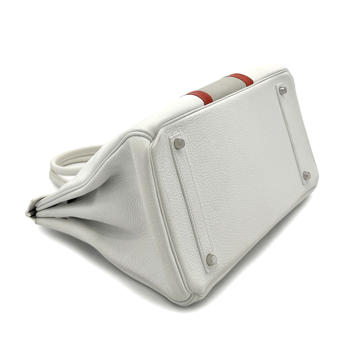 HERMES BIRKIN CLUB 35 WHITE GRIS PERLE SANGUINE TAURILLON CLEMENCE LIZARD HAND BAG □P SHW 90298337