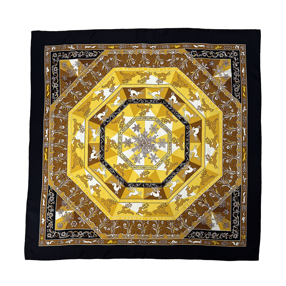 HERMES CARRE 90 FLEURS D HIVER SCARF SILK BLACK 90302653