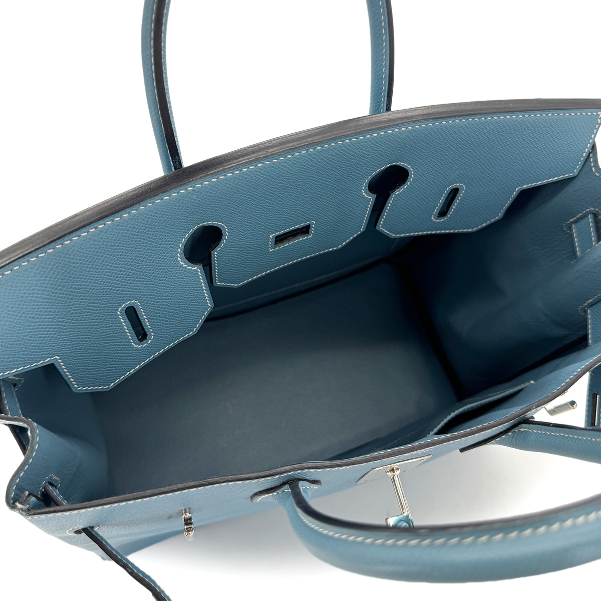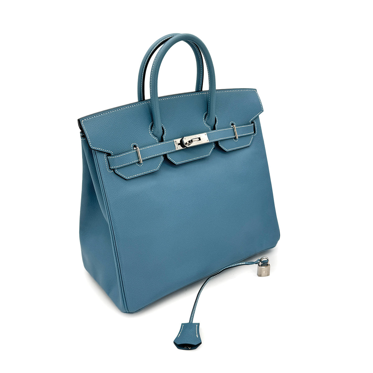 HERMES HAUT A COURROIES 32 BLUE JEAN EPSOM HAND BAG □J SHW 90292991