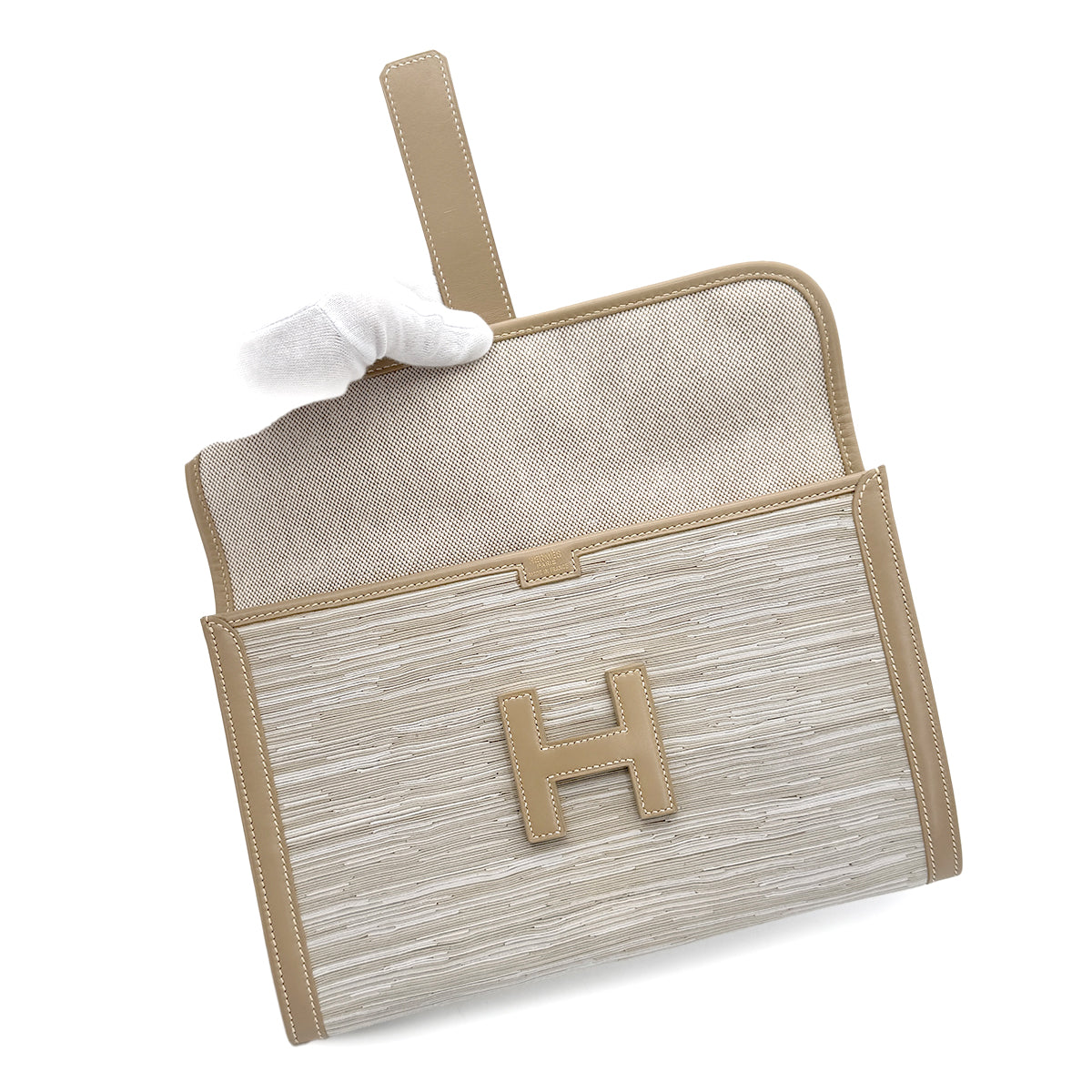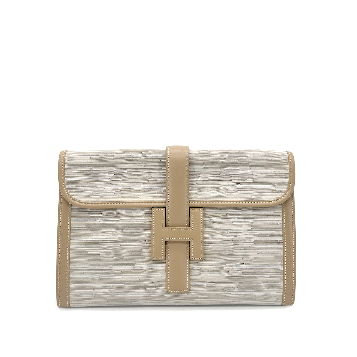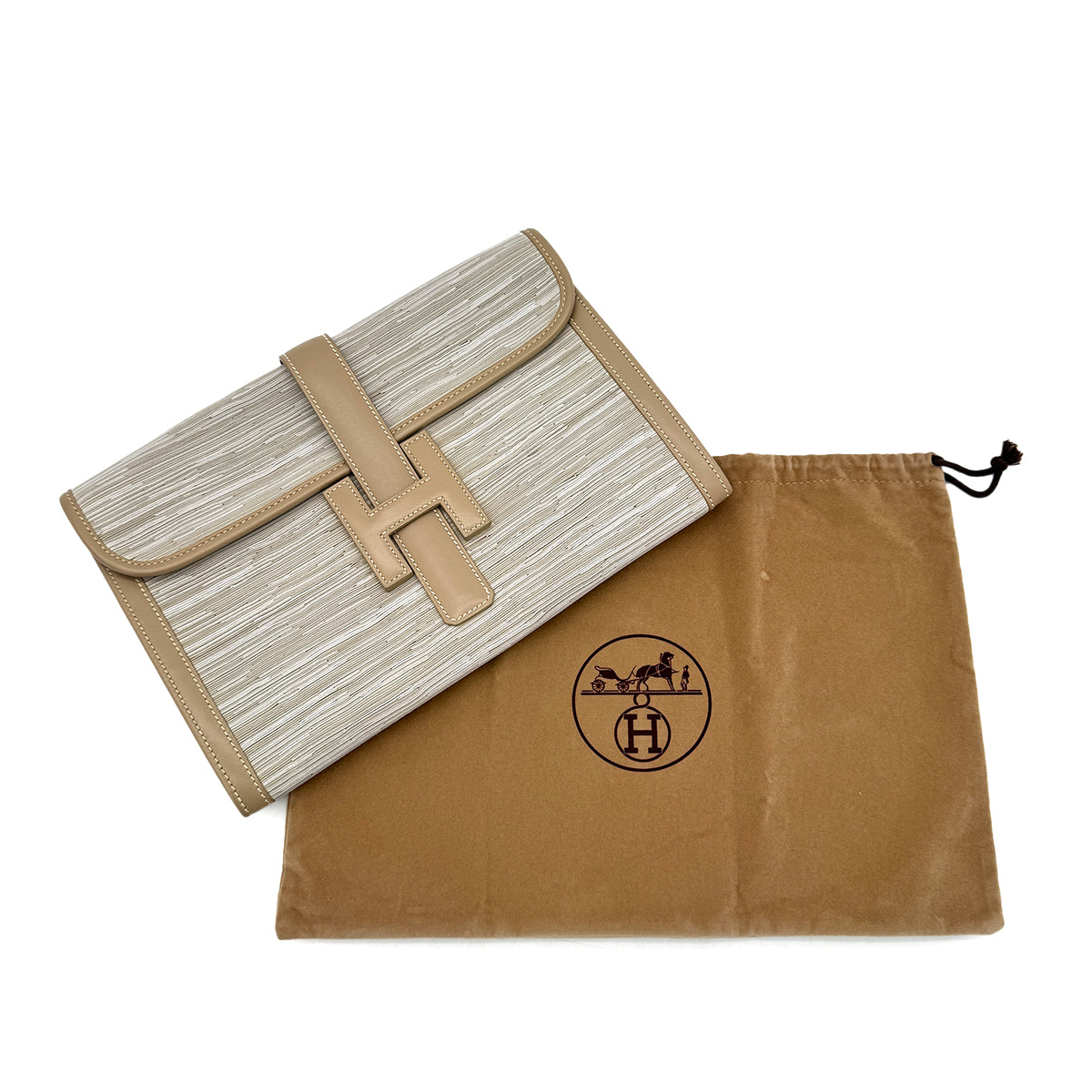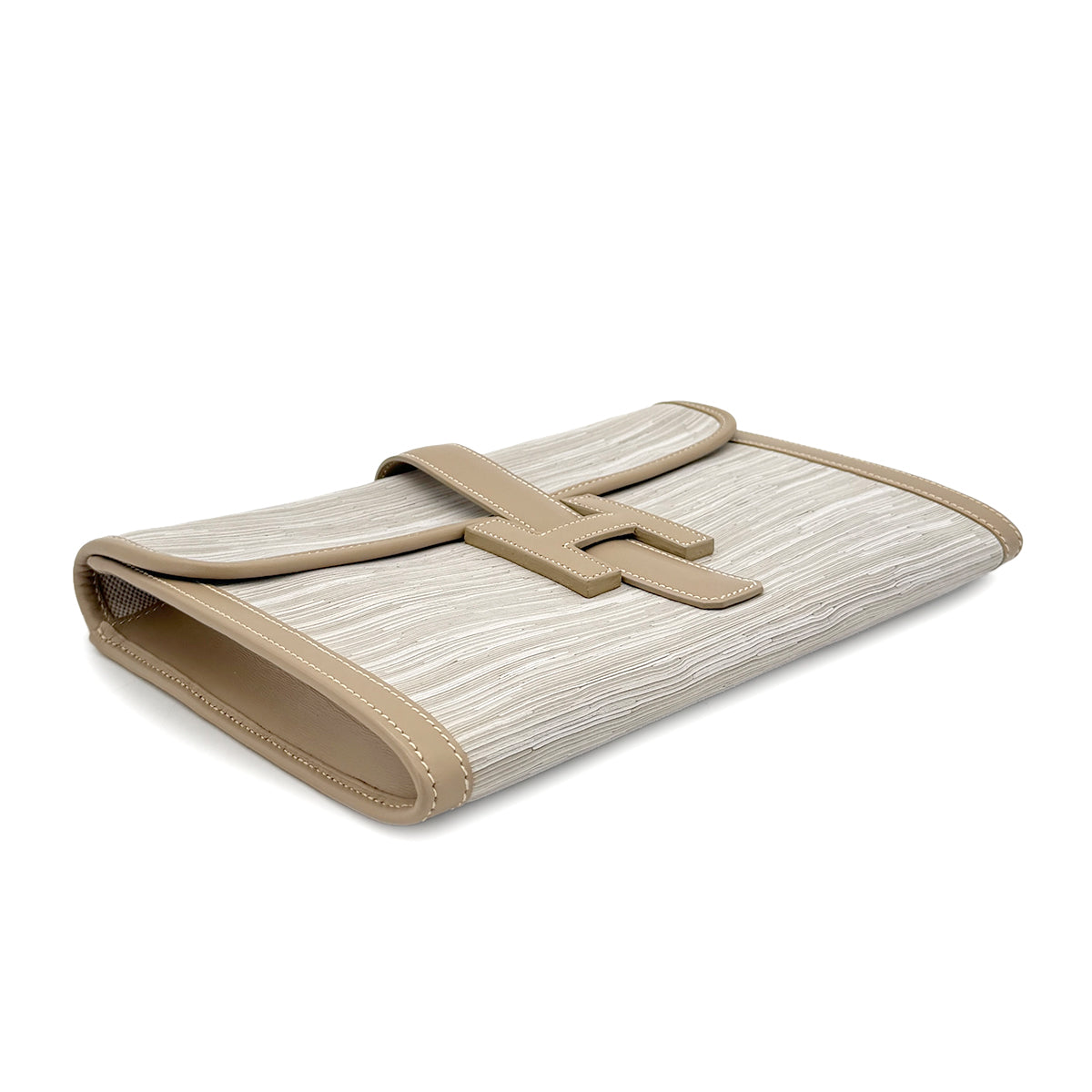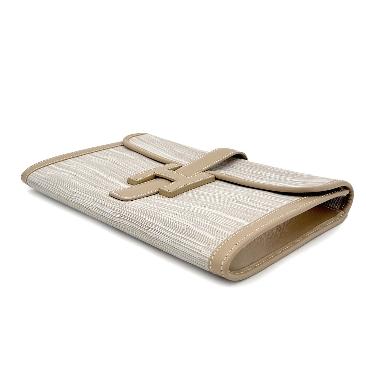 HERMES JIGE GRIS TOURTERELLE VIBRATO BOXCALF CLUTCH BAG □D 90292731
