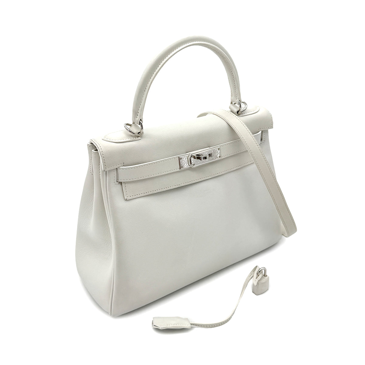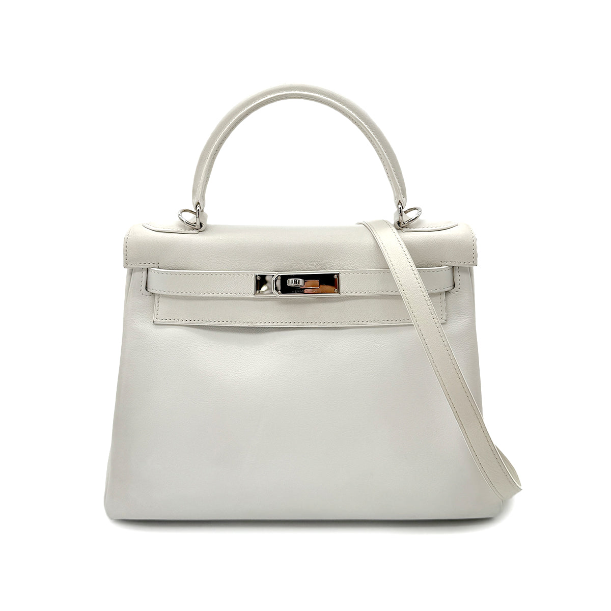 HERMES KELLY 28 RETOURNE WHITE SWIFT HAND SHOULDER BAG □L SHW 90292996