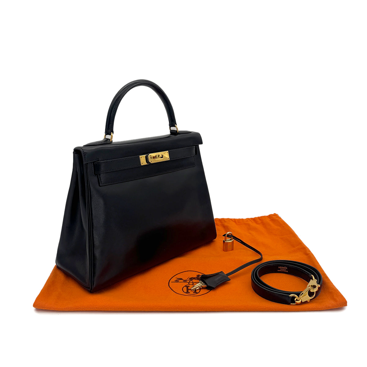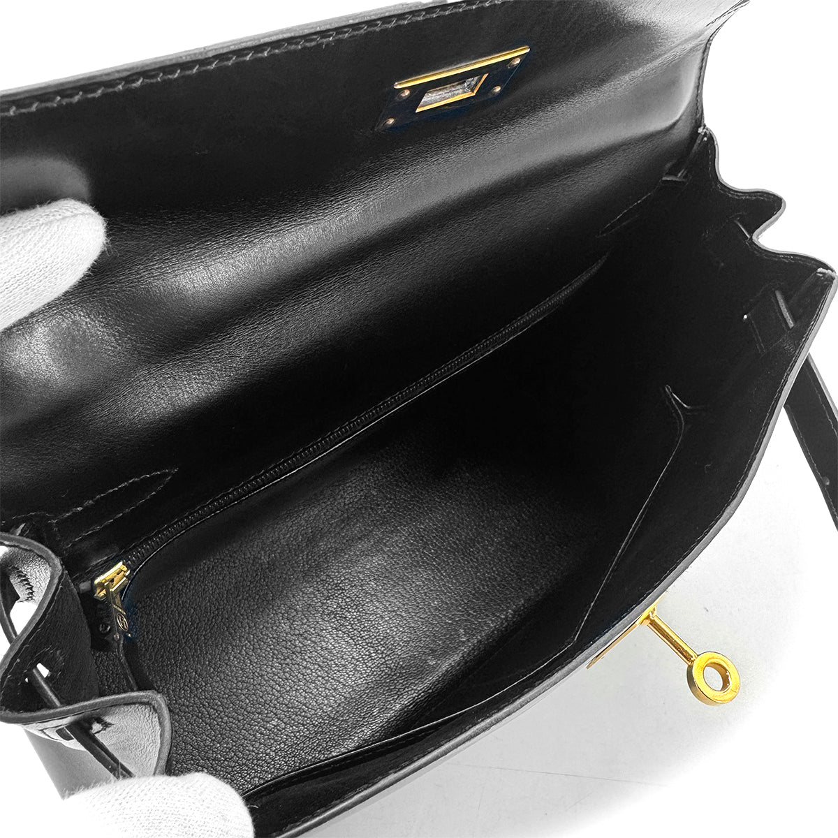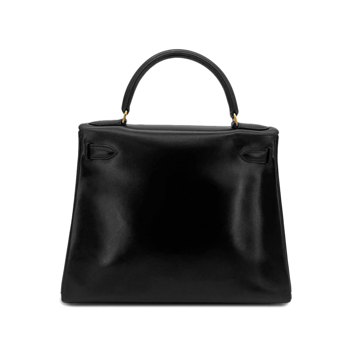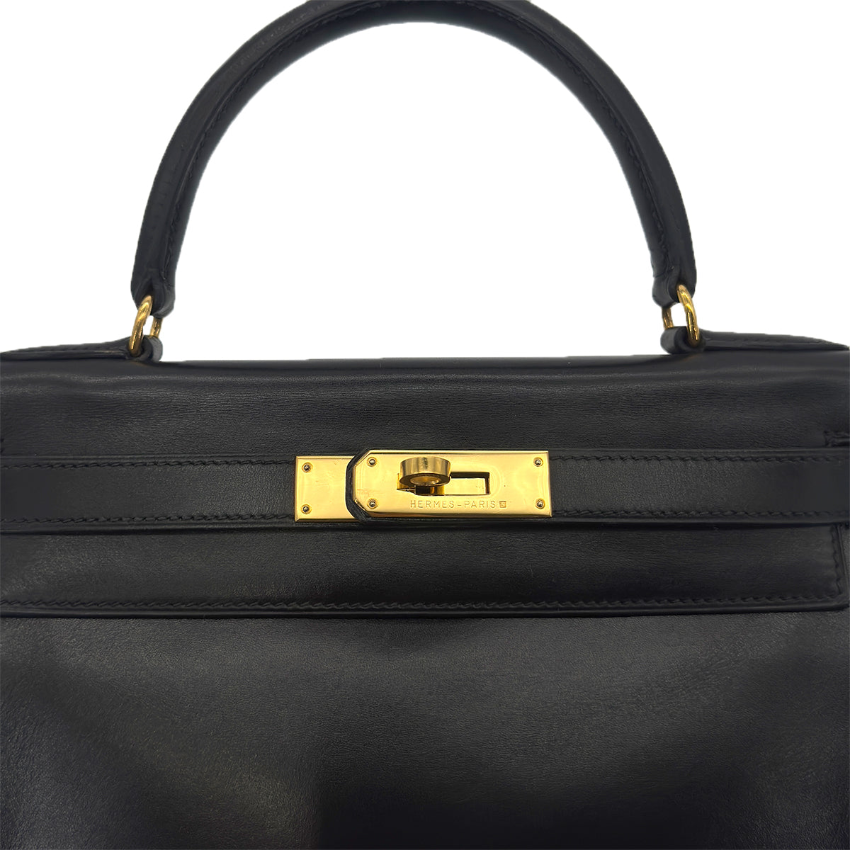 HERMES KELLY 28 RETOURNE BLACK BOXCALF HAND SHOULDER BAG 〇W GHW 90292095