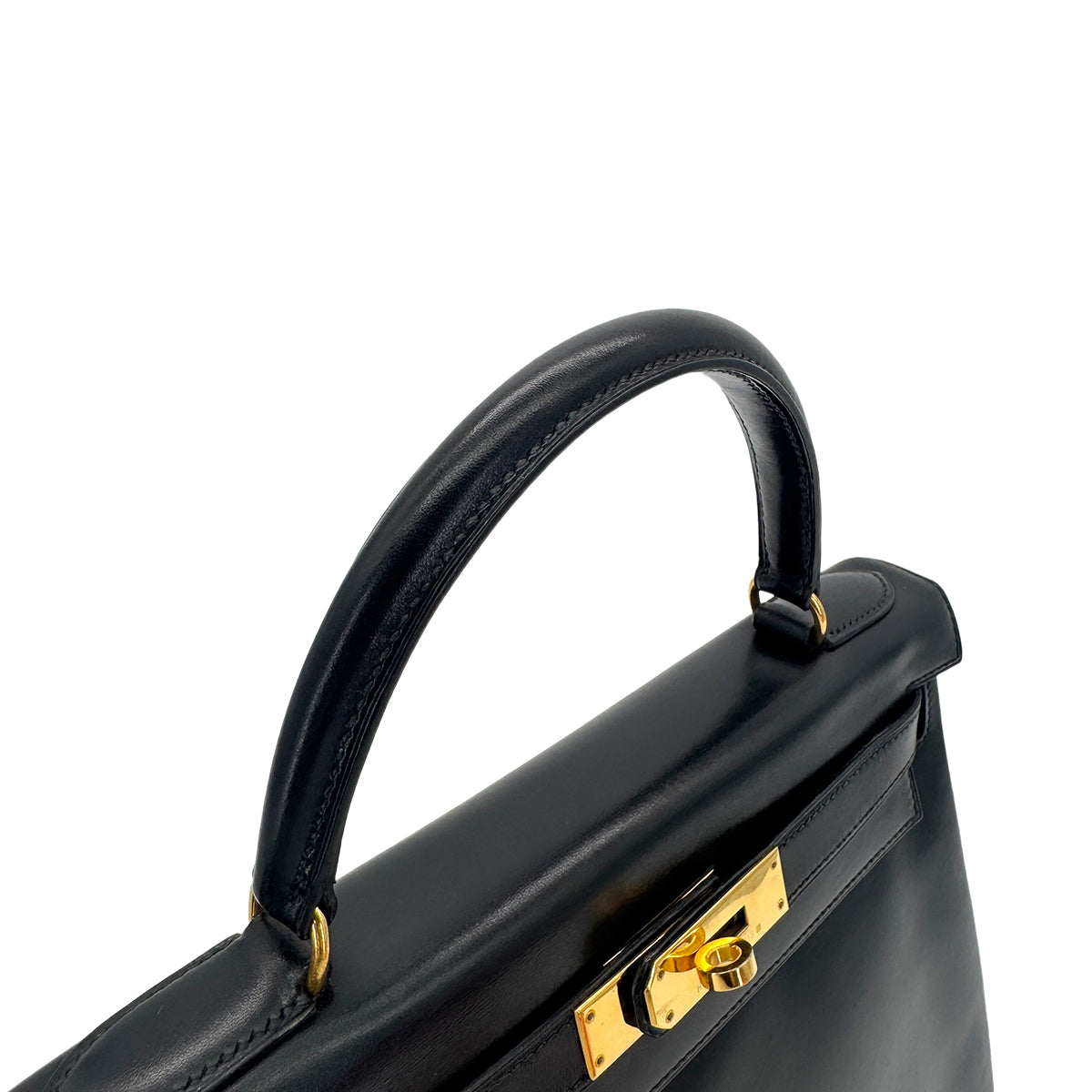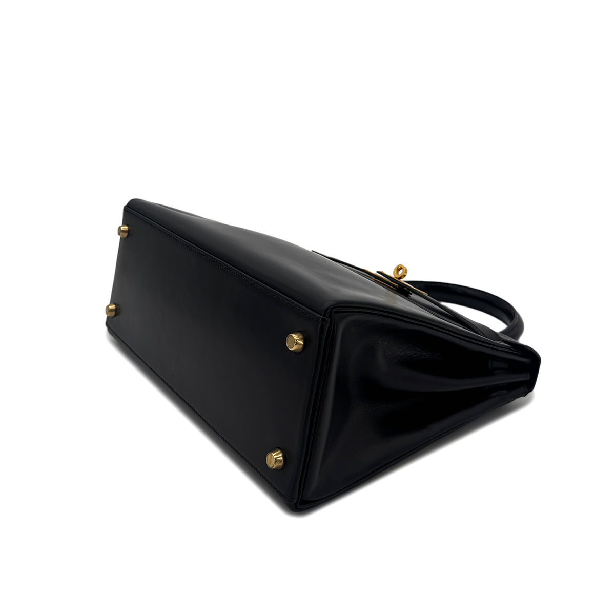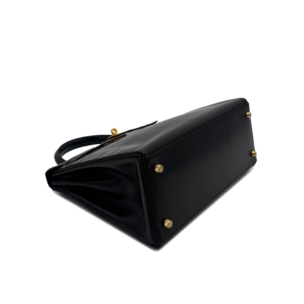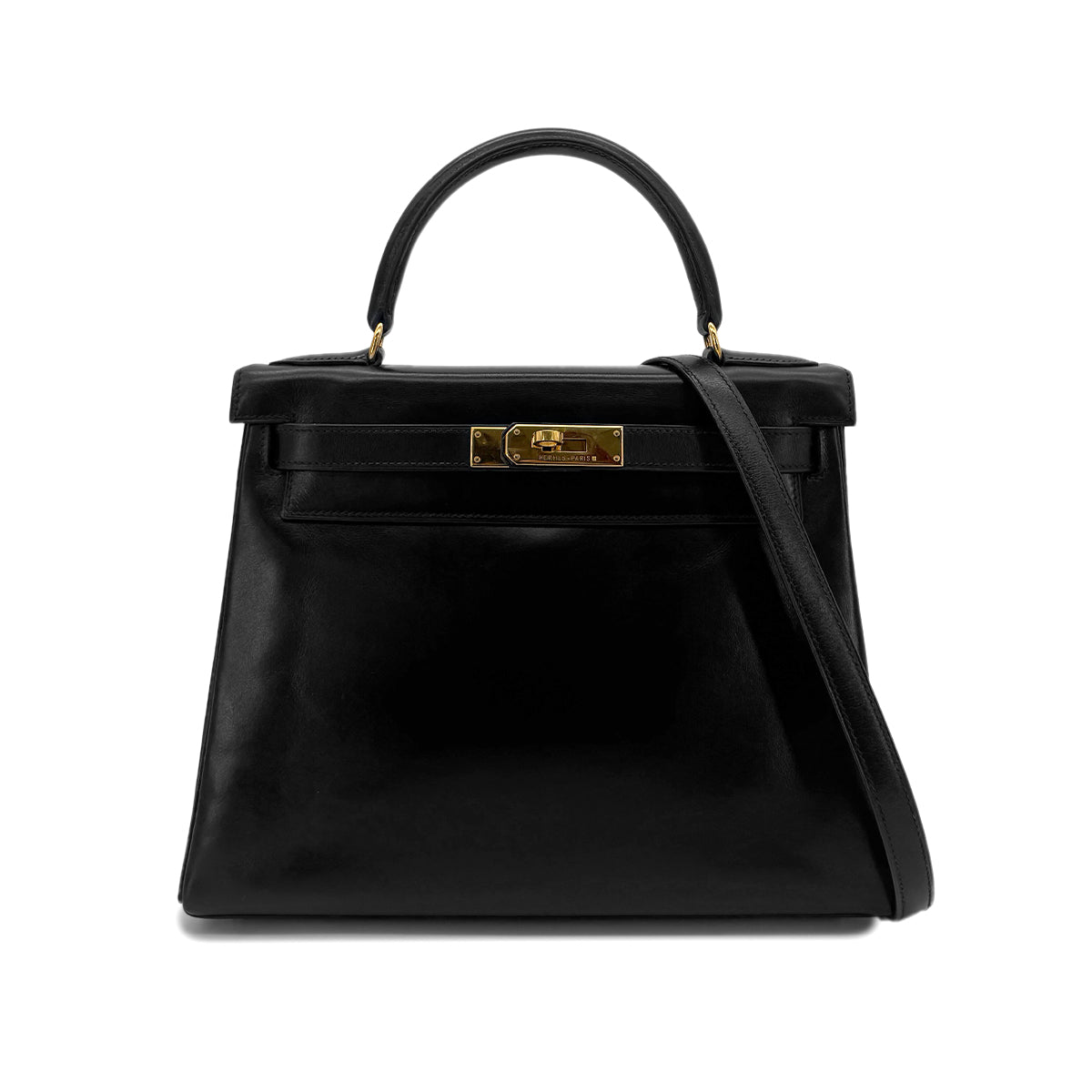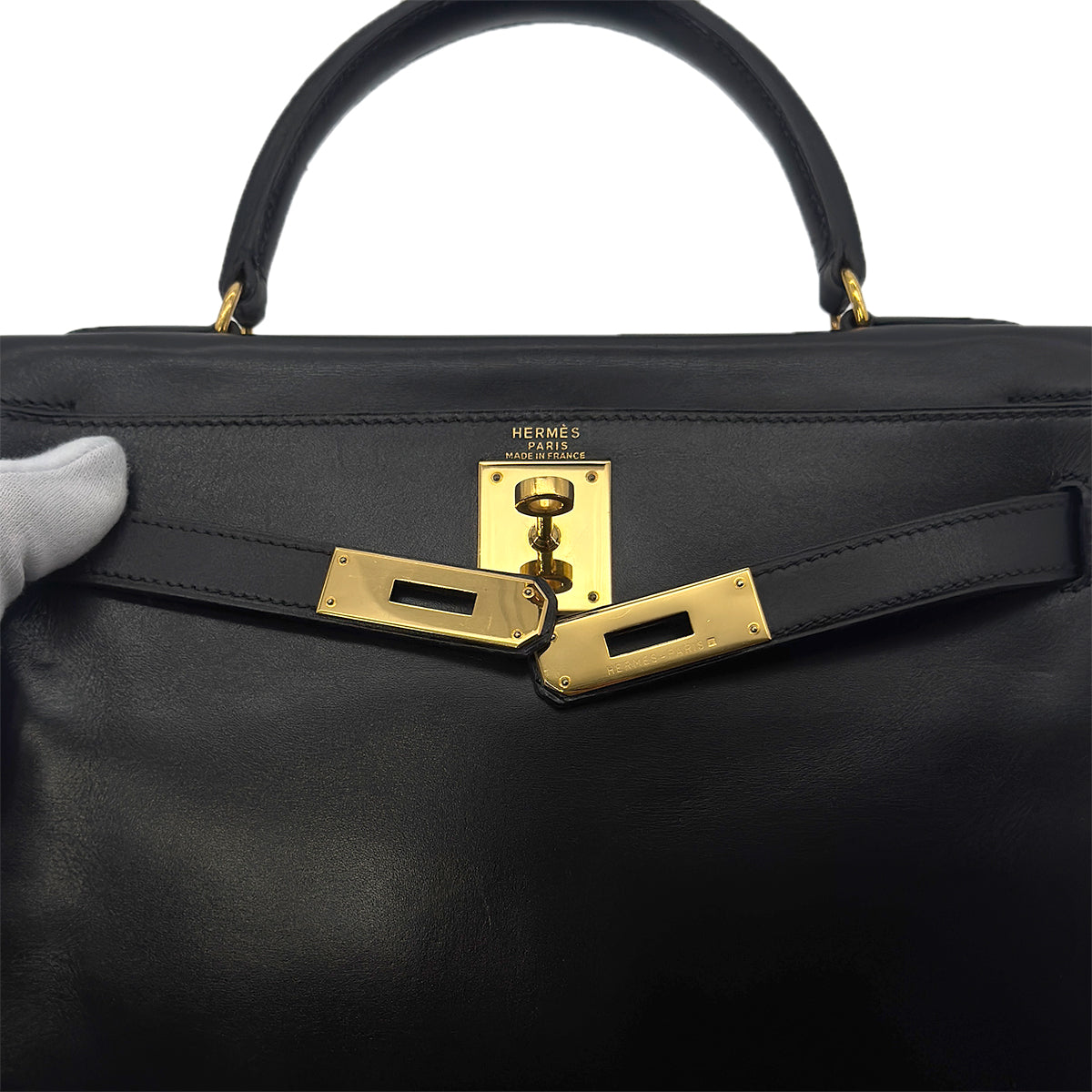 HERMES KELLY 28 RETOURNE BLACK BOXCALF HAND SHOULDER BAG 〇W GHW 90292095