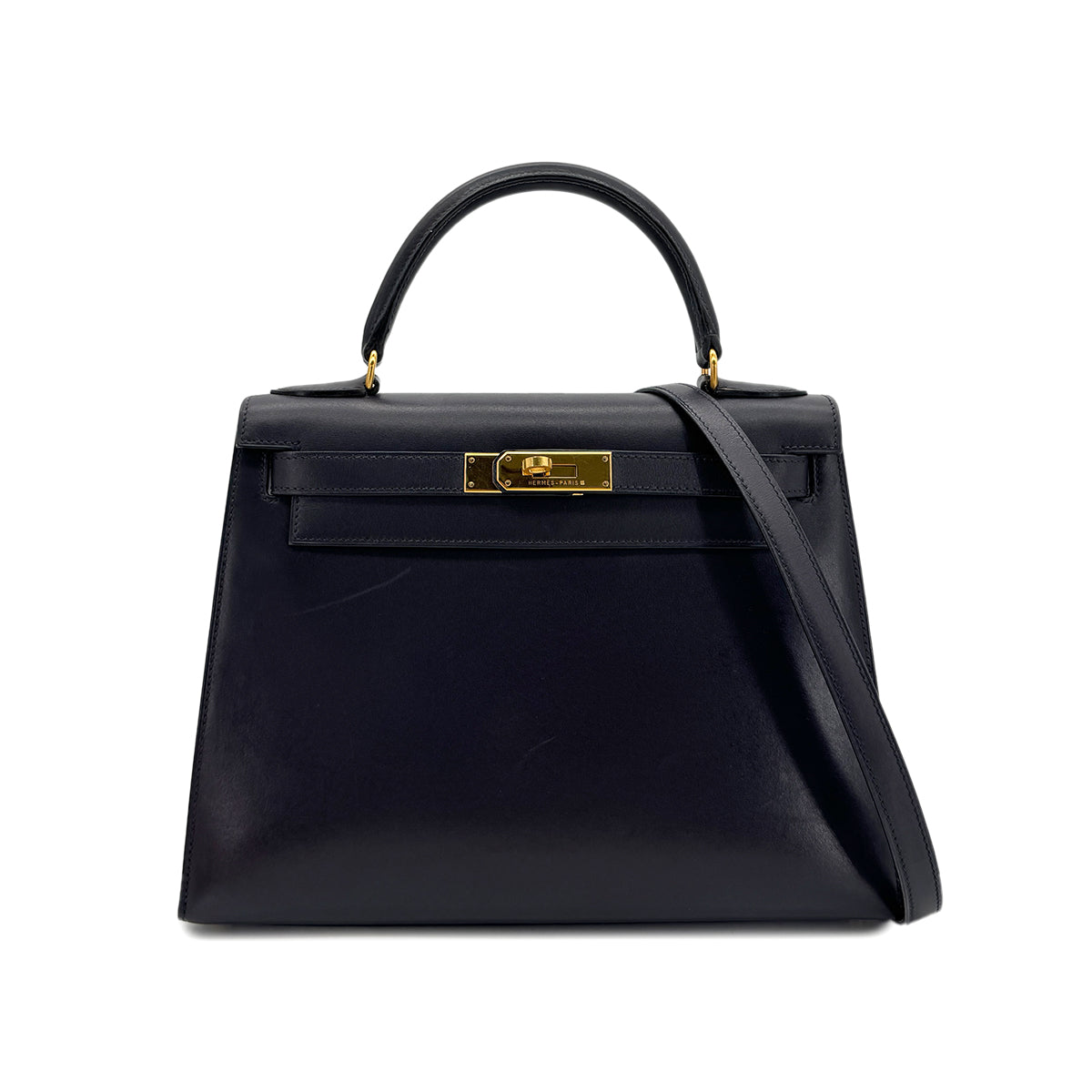 HERMES KELLY 28 SELLIER BLUE MARINE BOXCALF HAND SHOULDER BAG □B GHW 90299052
