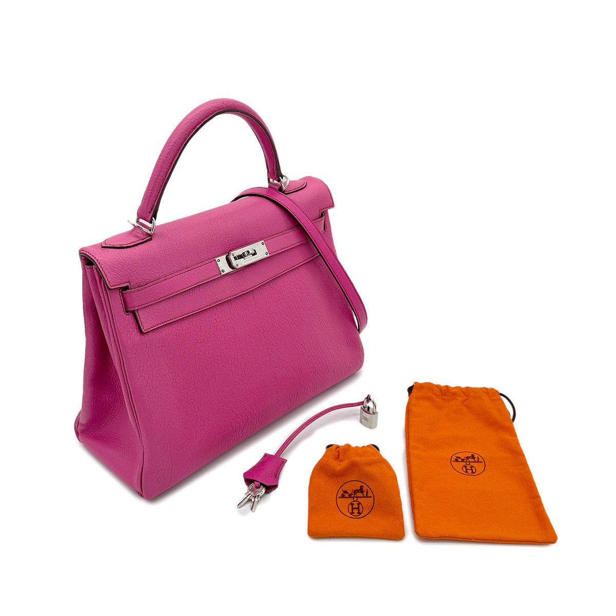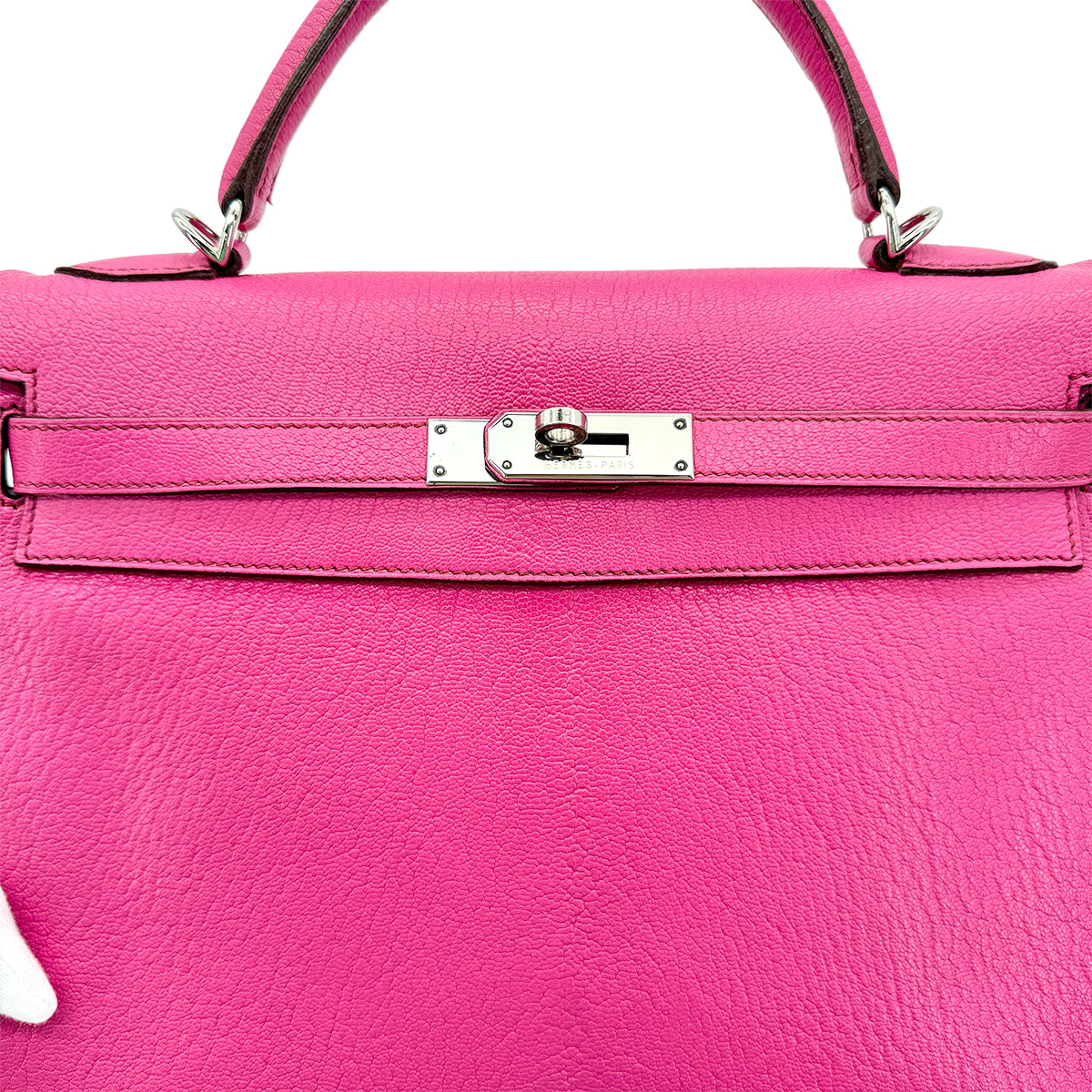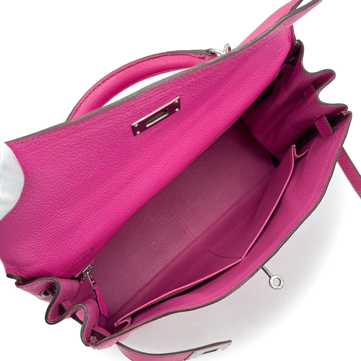 HERMES KELLY 32 RETOURNE FUCHSIA CHEVRE HAND SHOULDER BAG □I SHW 90292989