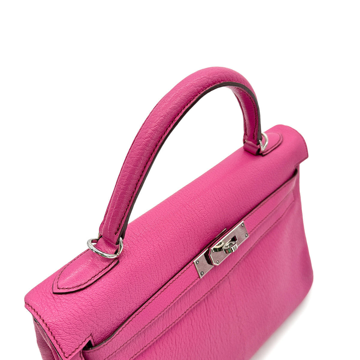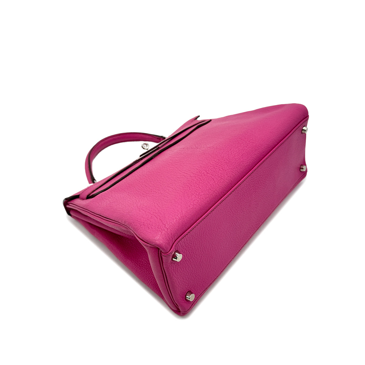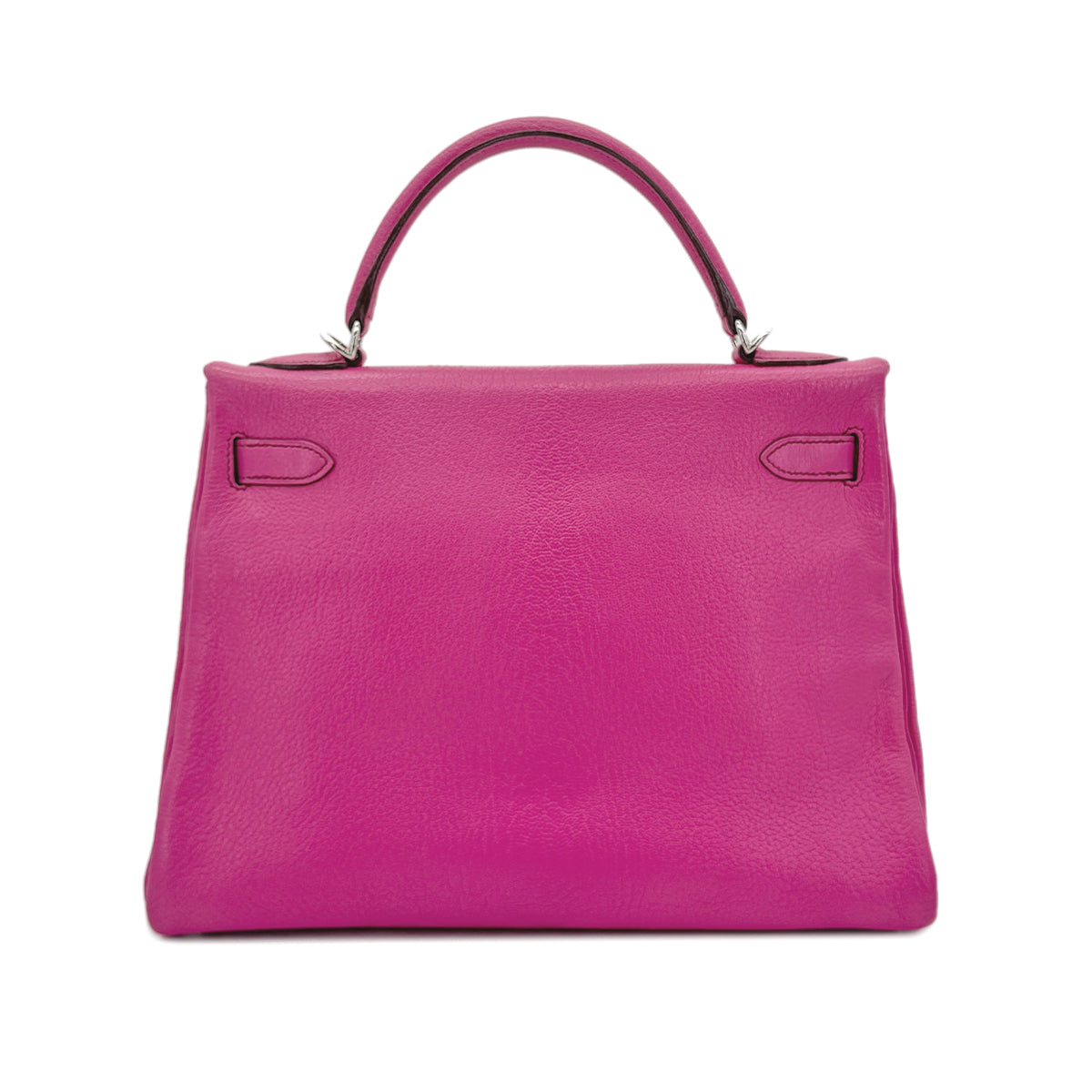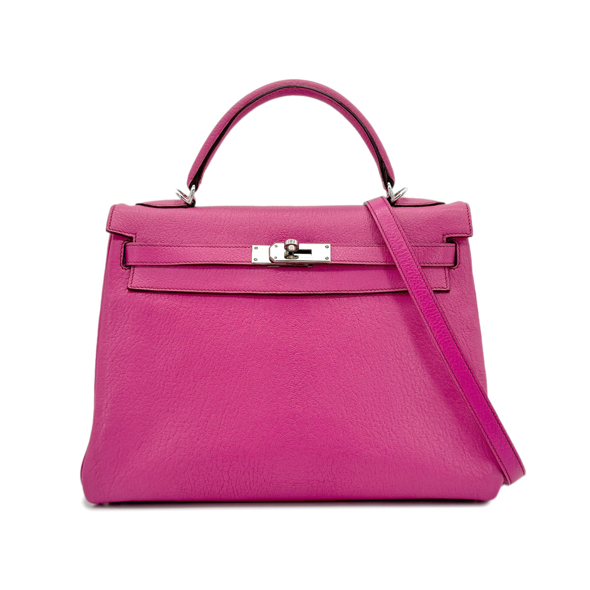 HERMES KELLY 32 RETOURNE FUCHSIA CHEVRE HAND SHOULDER BAG □I SHW 90292989