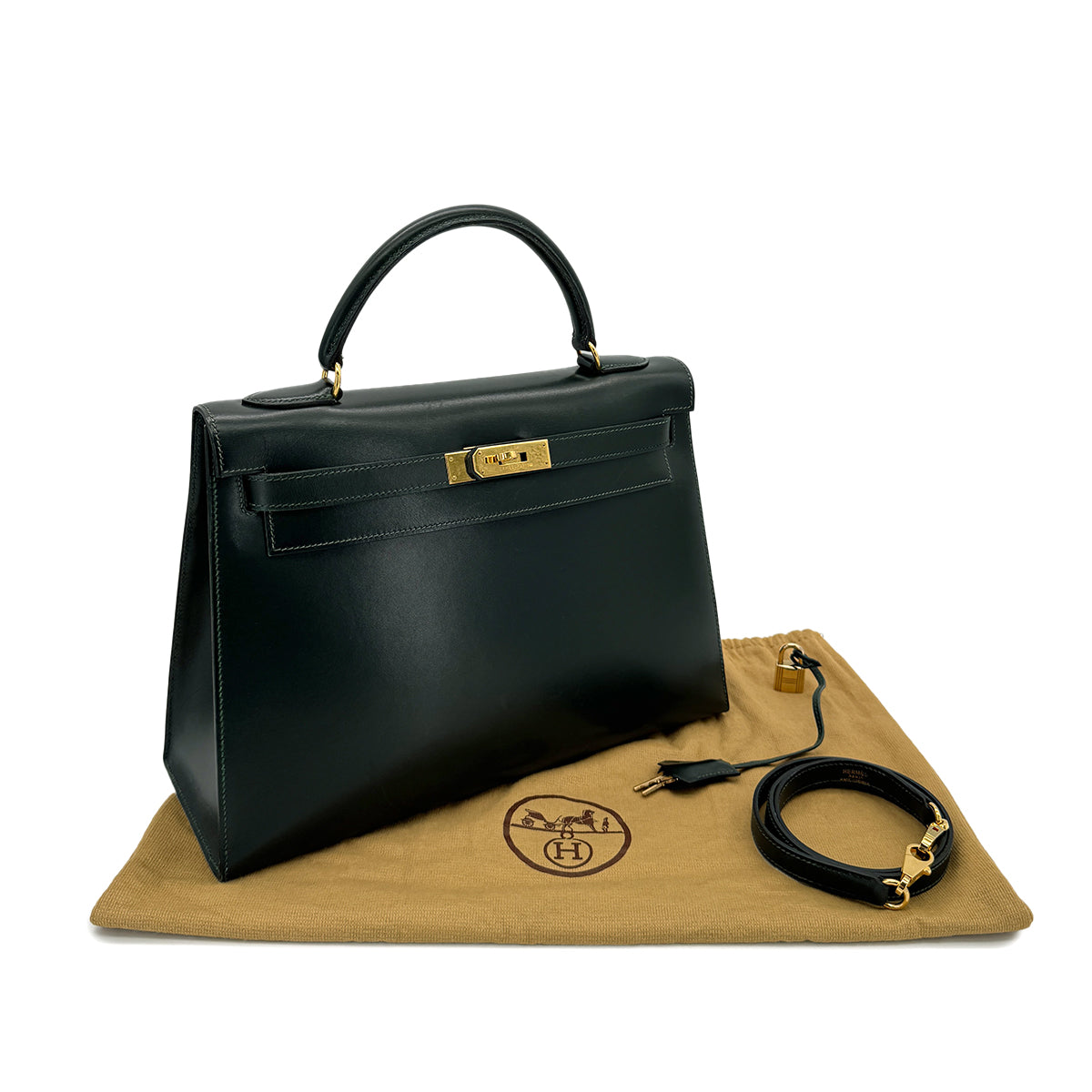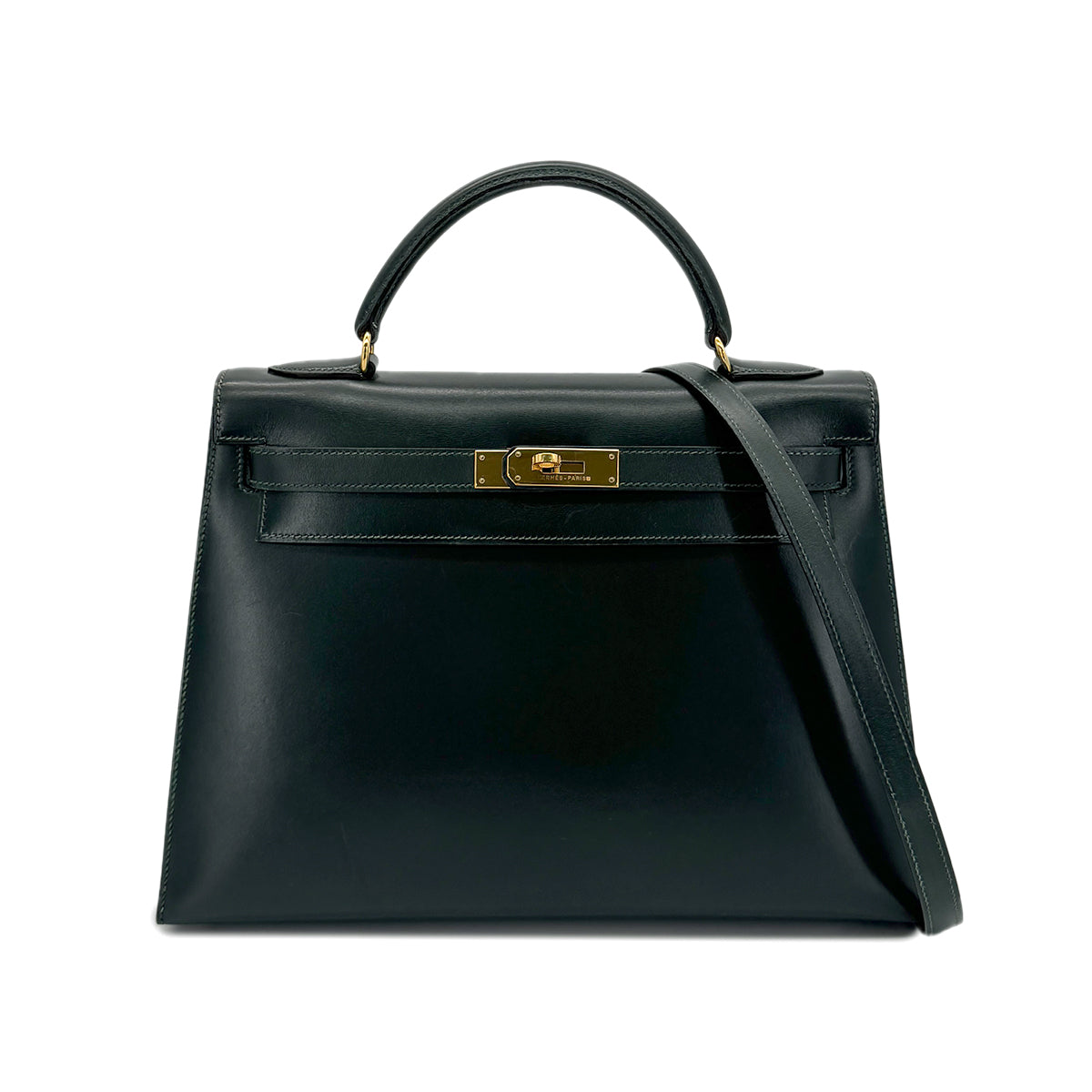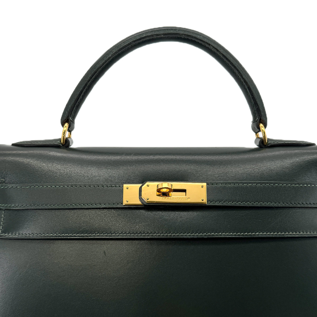 HERMES KELLY 32 SELLIER VERT BOXCALF HAND SHOULDER BAG 〇V GHW 90292817