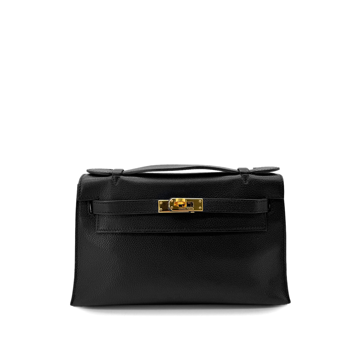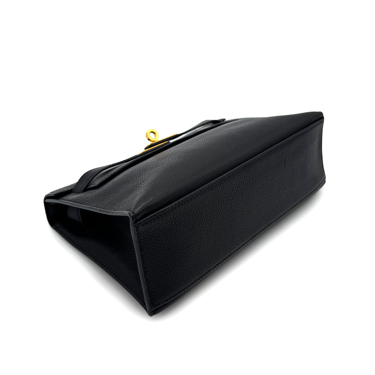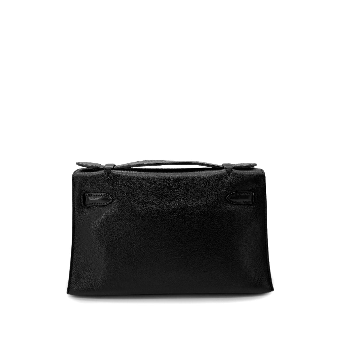 HERMES KELLY POCHETTE SELLIER BLACK EVERGRAIN HAND BAG □I GHW 90293008